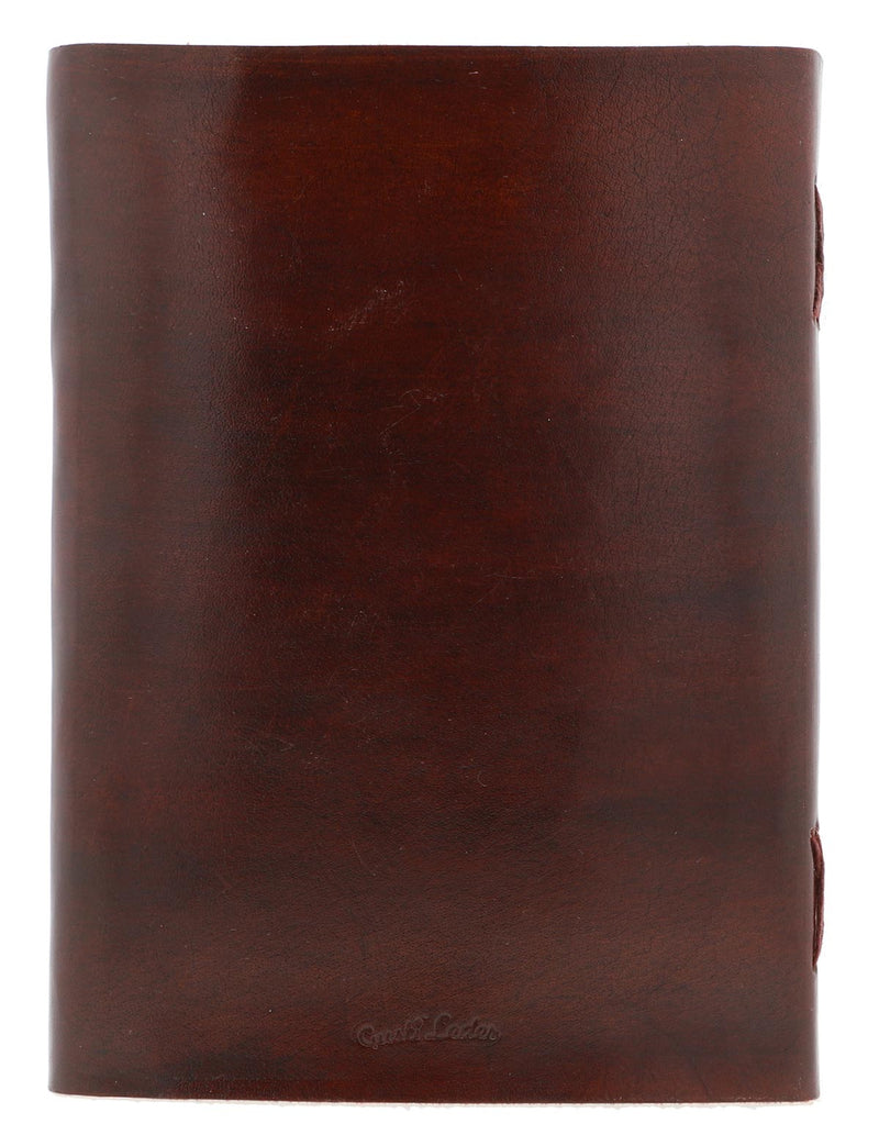 Bok med läderomslag och cirka 200 sidor