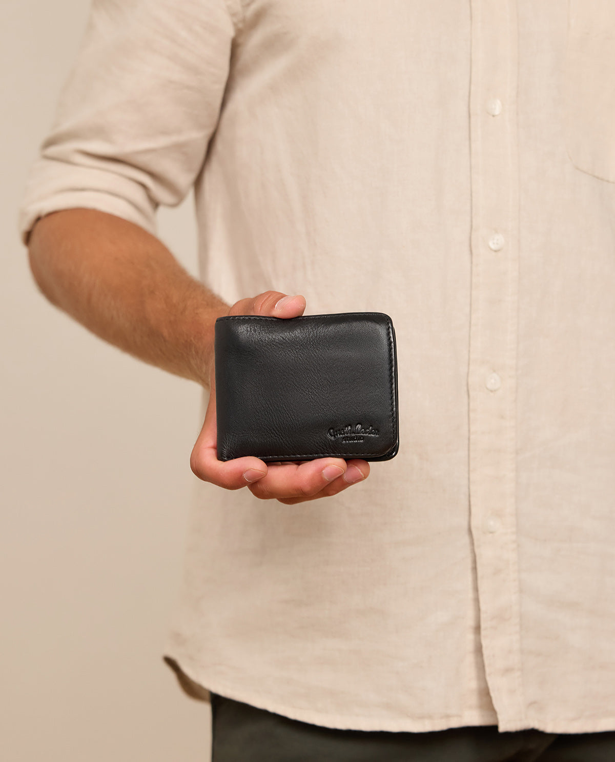 Känner du igen det här? När du är ute saknar du ofta en plats för kort eller sedlar. Med den här plånboken i vintagesvarta läder är det problemet ett minne blott. Perfekt för resor eller korta utflykter - denna plånbok passar i alla dina fickor och ser till att du alltid är välorganiserad.