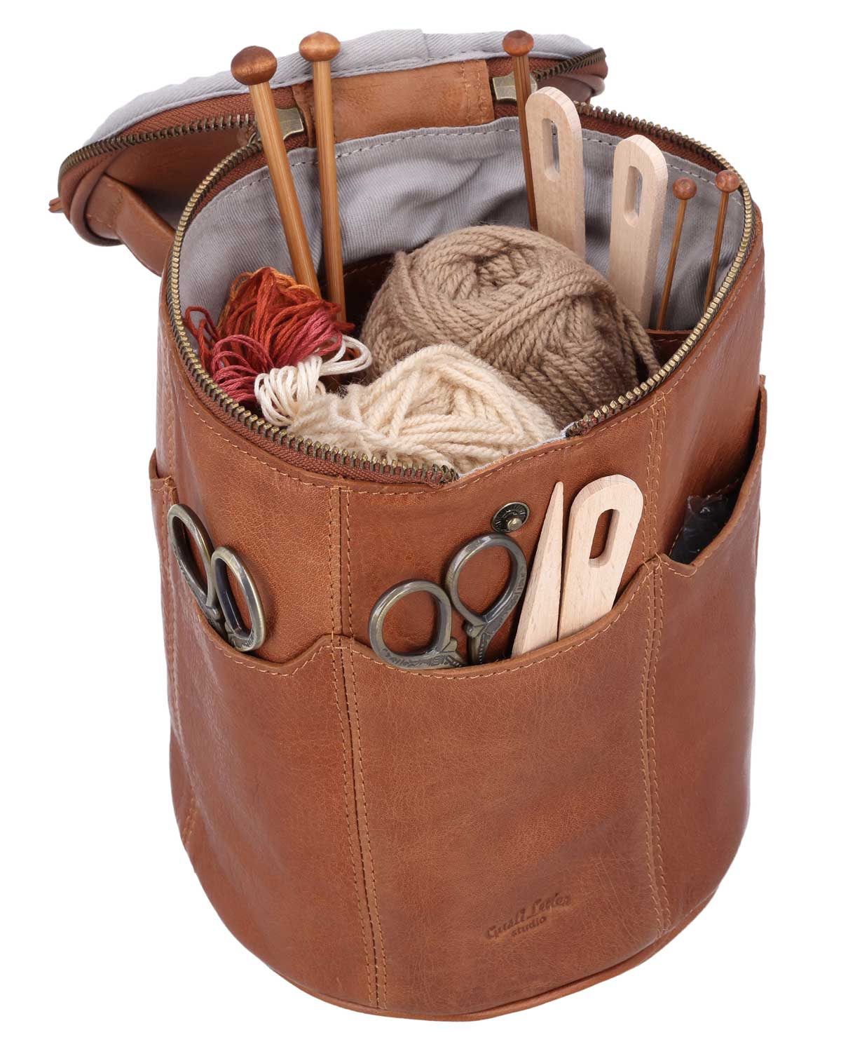 Praktisk och stilren – "Corvin" stick- och virkväska i läder