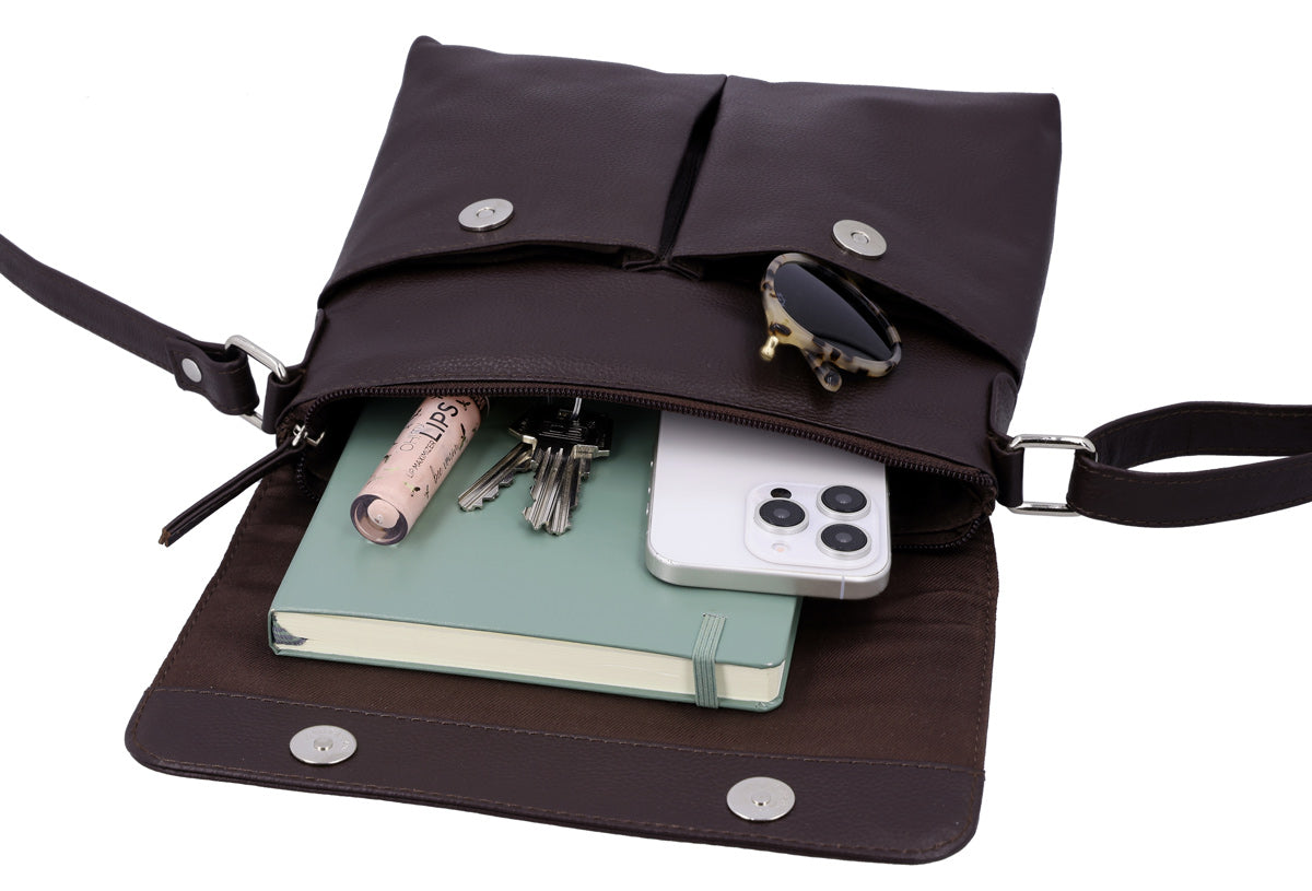 De två rymliga framfickorna möjliggör snabb åtkomst till småsaker som nycklar, mobil eller plånbok. Den rektangulära designen säkerställer en effektiv användning av utrymmet, medan den svarta färgen ger varje outfit en elegant, tidlös accent. Så är du alltid välorganiserad och samtidigt stilfullt på väg.