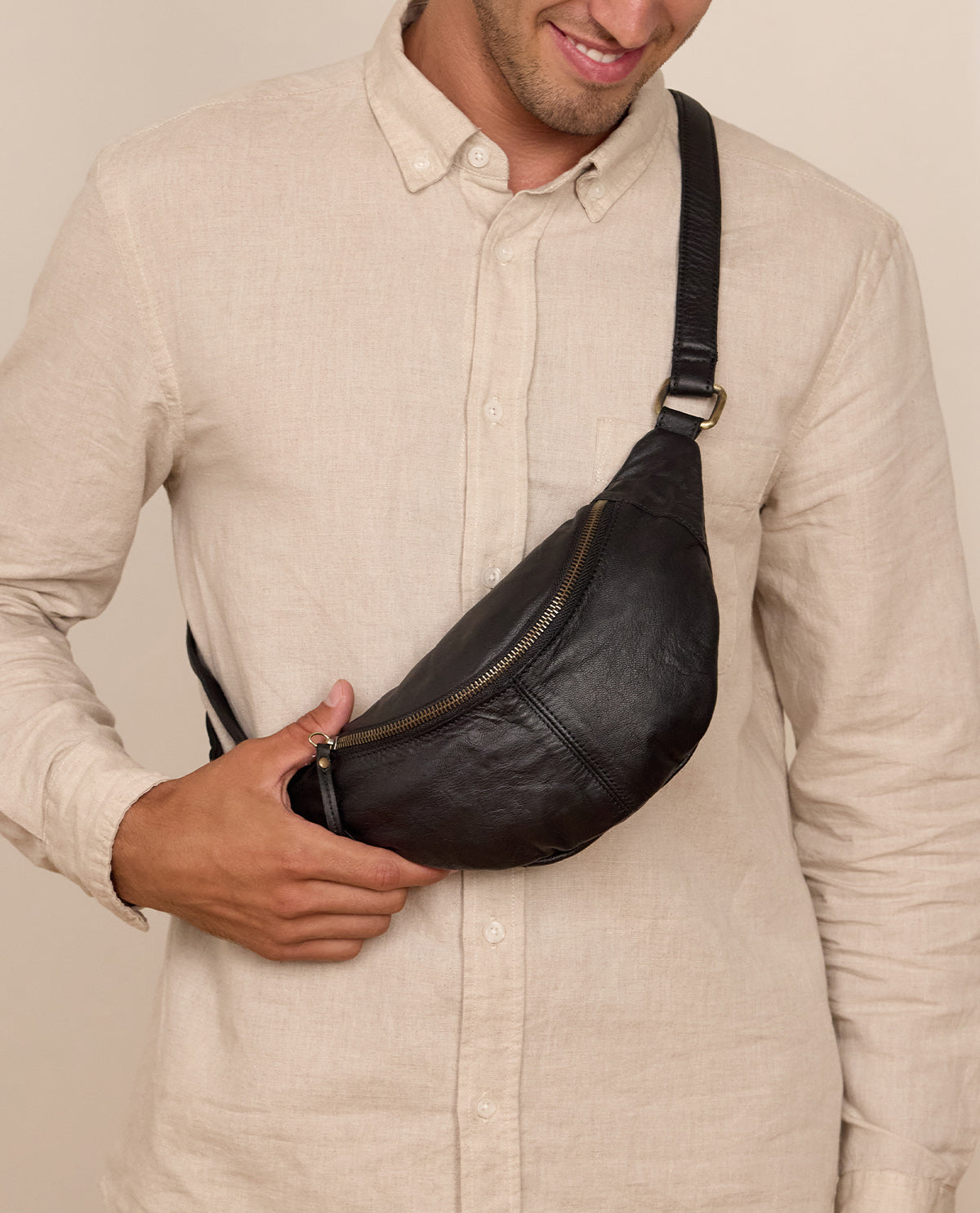 Är byxfickorna inte tillräckligt stora och det känns för mycket med en handväska? Vi har en lösning på det problemet! Vår magväska "Cillian" är perfekt att ta med de gånger då en väska känns för stor och klumpig. Till exempel på en konsert, då vill vi inte ha någon ryggsäck som stör, eller en tung handväska på dansgolvet… Vi säger nej tack, men säger yes please till "Cillian"! Trots att det är en magväska får du plats med allt det du behöver; mobil, nycklar, plånbok och kanske lite smink. Du kan bära väskan runt midjan eller hänga den över axeln och ryggen, du bestämmer hur du vill ha det! "Cillian" är en bum bag i äkta läder och ärlig design som passar till vilken outfit som helst och den kommer att kunna göra livet enklare för dig. Så fyll väskan med det du behöver och ge dig ut på nästa äventyr, med "Cillian"!