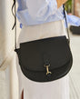 Handväska Axelremsväska Rundad Väska Läderväska Svart Läder