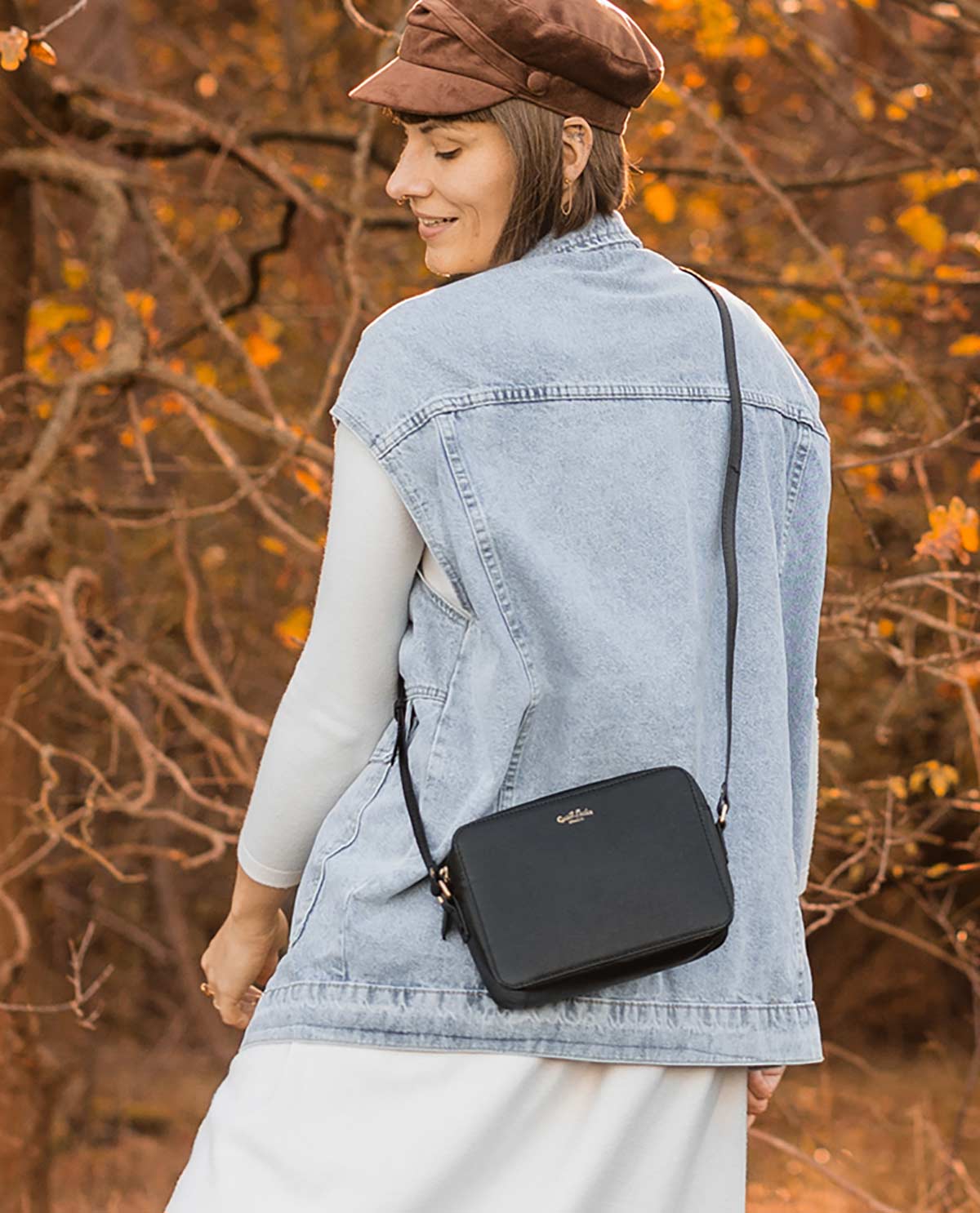 I den stilsäkra handväskan "Almina" har du hittat en väska som passar till alla outfits. Det är en cross-body-bag som har en rak och tydlig form. Den praktiska storleken gör den till en perfekt väska för dagen på stan och tack vare den eleganta designen kommer du att ha stil och klass även på teater- eller operabesöket senare på kvällen, eller kanske på dejten på en ny restaurang.