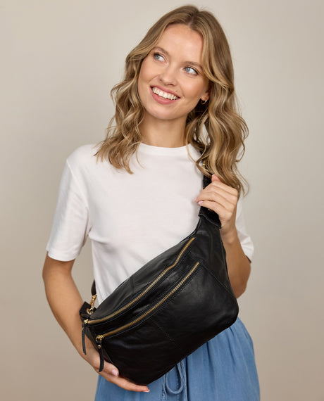 Oavsett om det är på stadspromenaden, på resan eller på festivalen – med en midjeväska från Gusti Leder har du en pålitlig och stilren följeslagare vid din sida!
