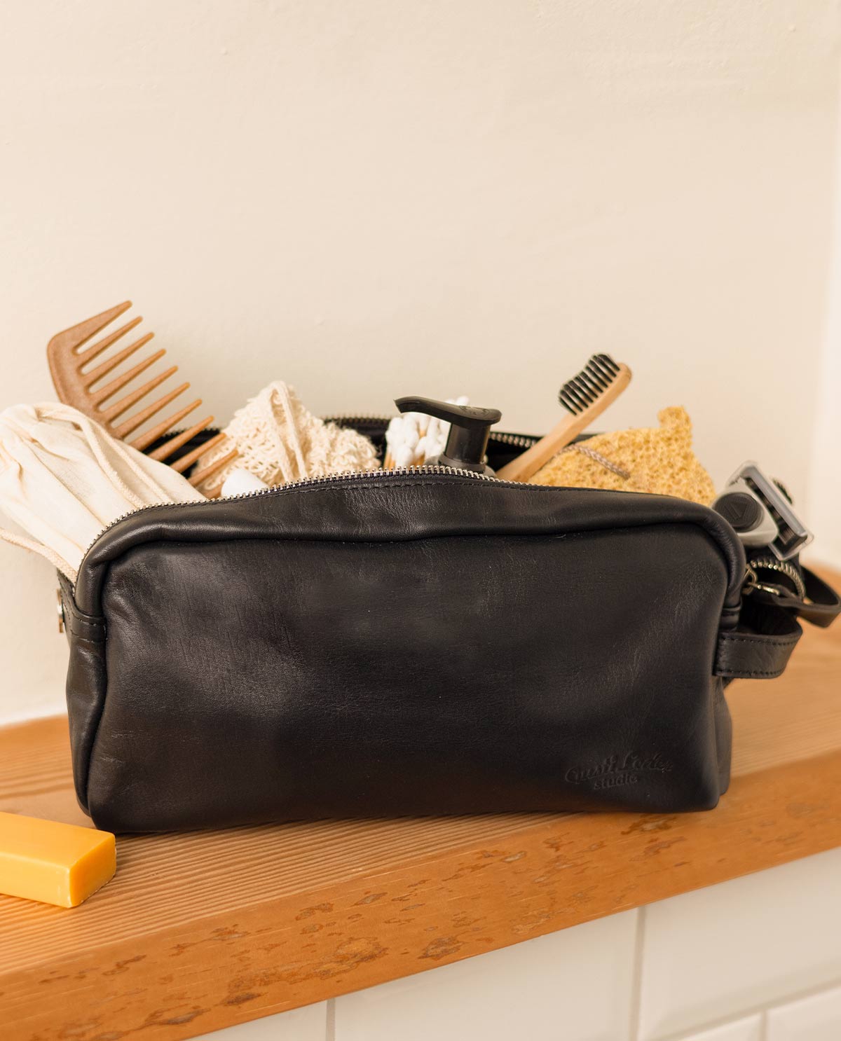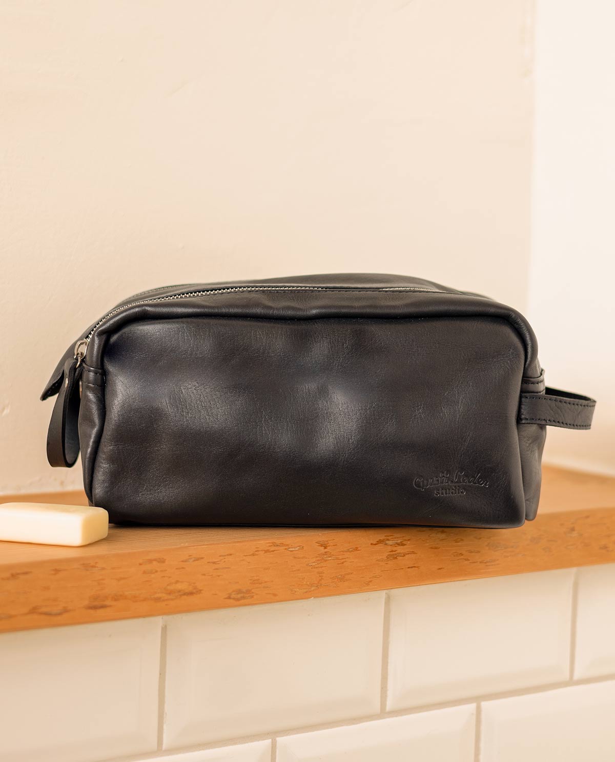 I högkvalitativt bearbetat och slittåligt koläder är "Finja" den perfekta platsen för dina hygienartiklar hemma i badrummet eller under resan. Du får plats med deo, schampo, balsam, tandkräm- och borste och mycket mer. Dessutom kan du känna dig extra trygg att resa med så mycket krämiga produkter eftersom innertyget är vattenavvisande. Hela necessären stängs med en dubbel dragkedja, vilket gör att öppningen verkligen är extra bred. Det finns även ett praktikst handtag.