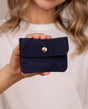 Förvaringsväska plånbok portmonnä organiser liten läderväska dam blå läder - Made in Italy