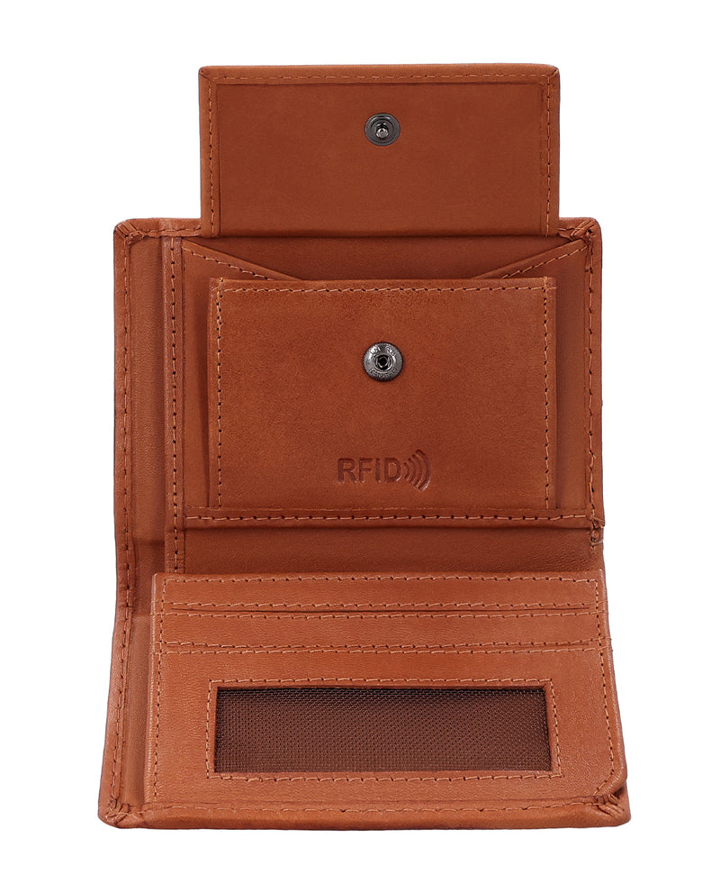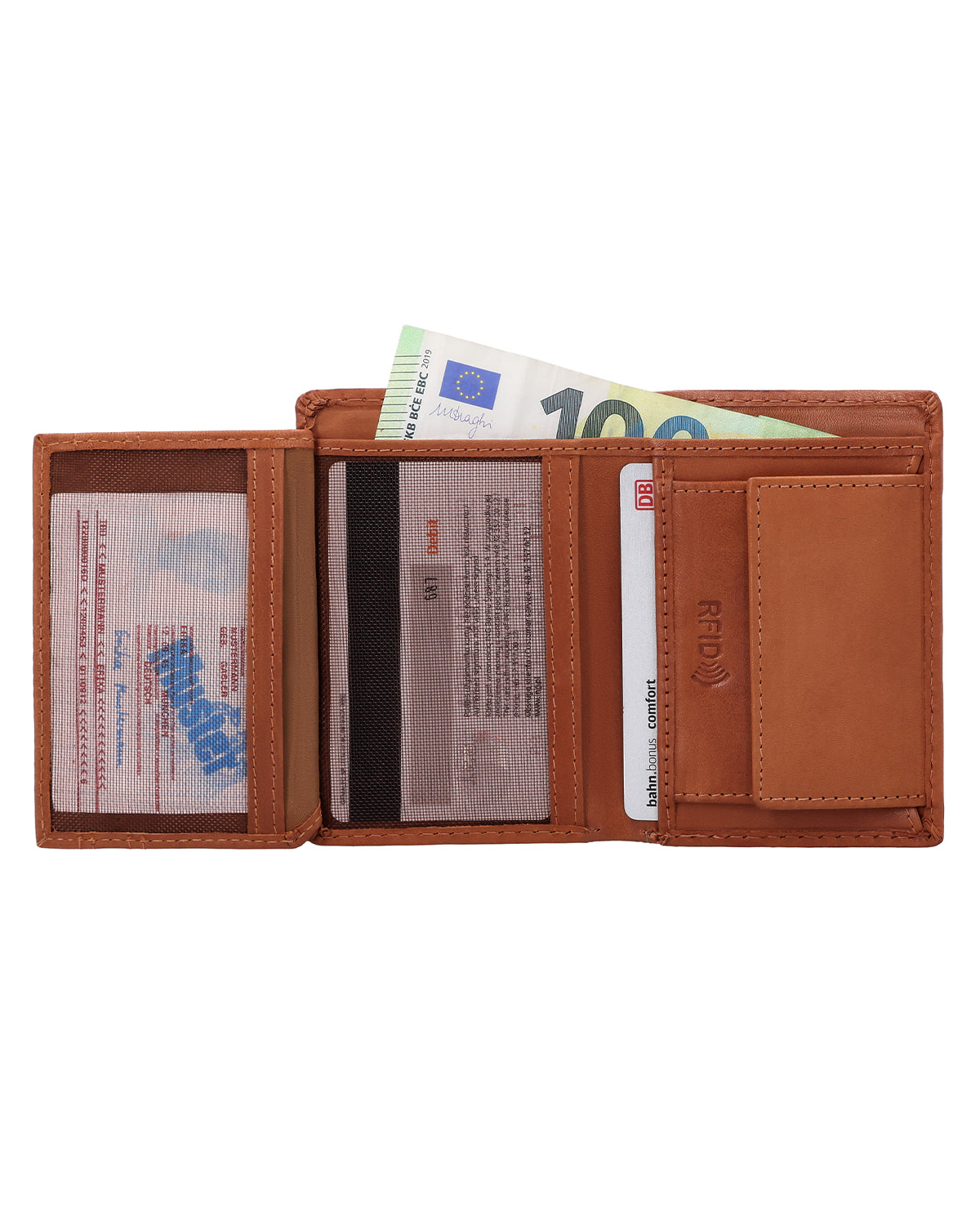 Ska din plånbok bara fylla sin funktion? Då är "Gabe" den perfekta plånboken för dig! Den enkla och praktiska plånboken är helt slät, men har gott om plats för allt du behöver. Det som är särskilt coolt med "Gabe" är dess kortfack: de är nämligen halvgenomskinliga så att du direkt kan se vilka kort du har lagt i vilket fack. Myntfacket kan stängas säkert med en tryckknapp och även dina sedlar får plats i "Gabe". För de små vardagsögonblicken finns det dessutom ett extra myntfack för en enda mynt – perfekt när du snabbt vill ha något till hands. Tack vare det integrerade RFID-skyddet är dina kort dessutom pålitligt skyddade mot oönskad avläsning. Det praktiska formatet passar i alla fickor och imponerar med sin klassiska, tidlösa design. Det robusta lädret tål allt och blir ännu vackrare med tiden.