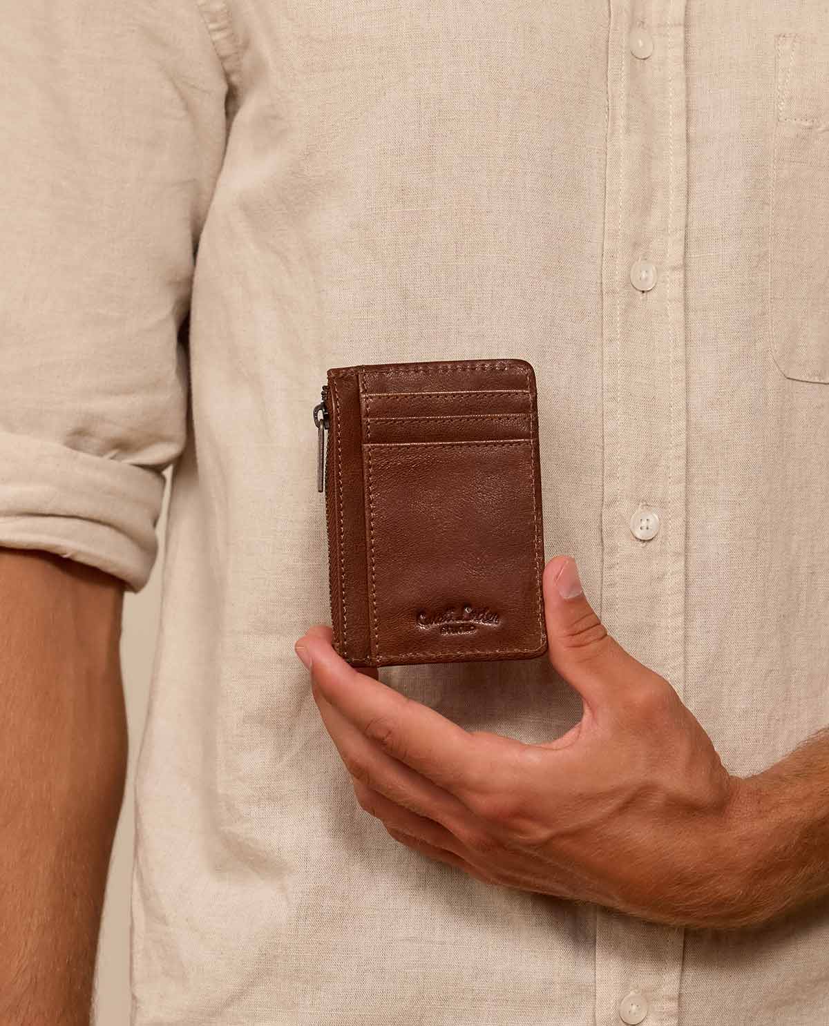 "Arlan" plånboken är mer än bara ett praktiskt tillbehör – det är en stilfull följeslagare som organiserar ditt liv. Tillverkad av högkvalitativt brunt läder, imponerar den med sin enkla elegans och utmärkta hantverk. Den eleganta bruna färgen och den fina texturen av lädret gör den till en tidlös klassiker, som lämnar ett bestående intryck både i fickan och i handen.
