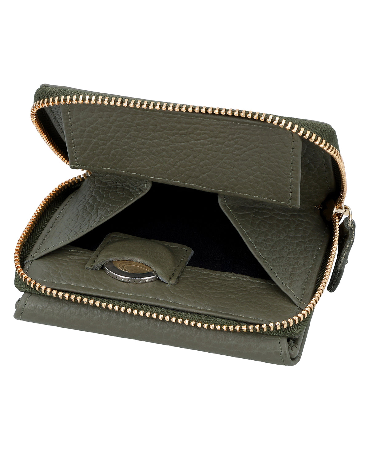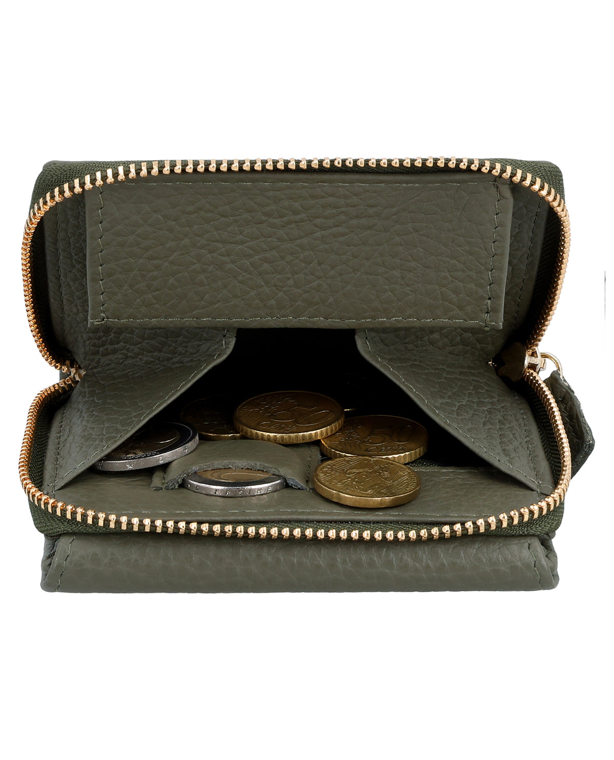 Inuti har "Brigitta" ett sedelfack, ett utfällbart fönster, plats för upp till 6 kort och ett separat myntfack som stängs med dragkedja. I myntfacket finns dessutom ett extra fack för en 1-eurosmynt, perfekt för kundvagnar eller förvaringsskåp. Så rullar ingenting fritt i väskan. Plånboken är tillverkad av högkvalitativt nötläder och stängs med hjälp av en tryckknapp. Ner i väskan – nu kan du ge dig iväg med plånboken ”Brigitta”!