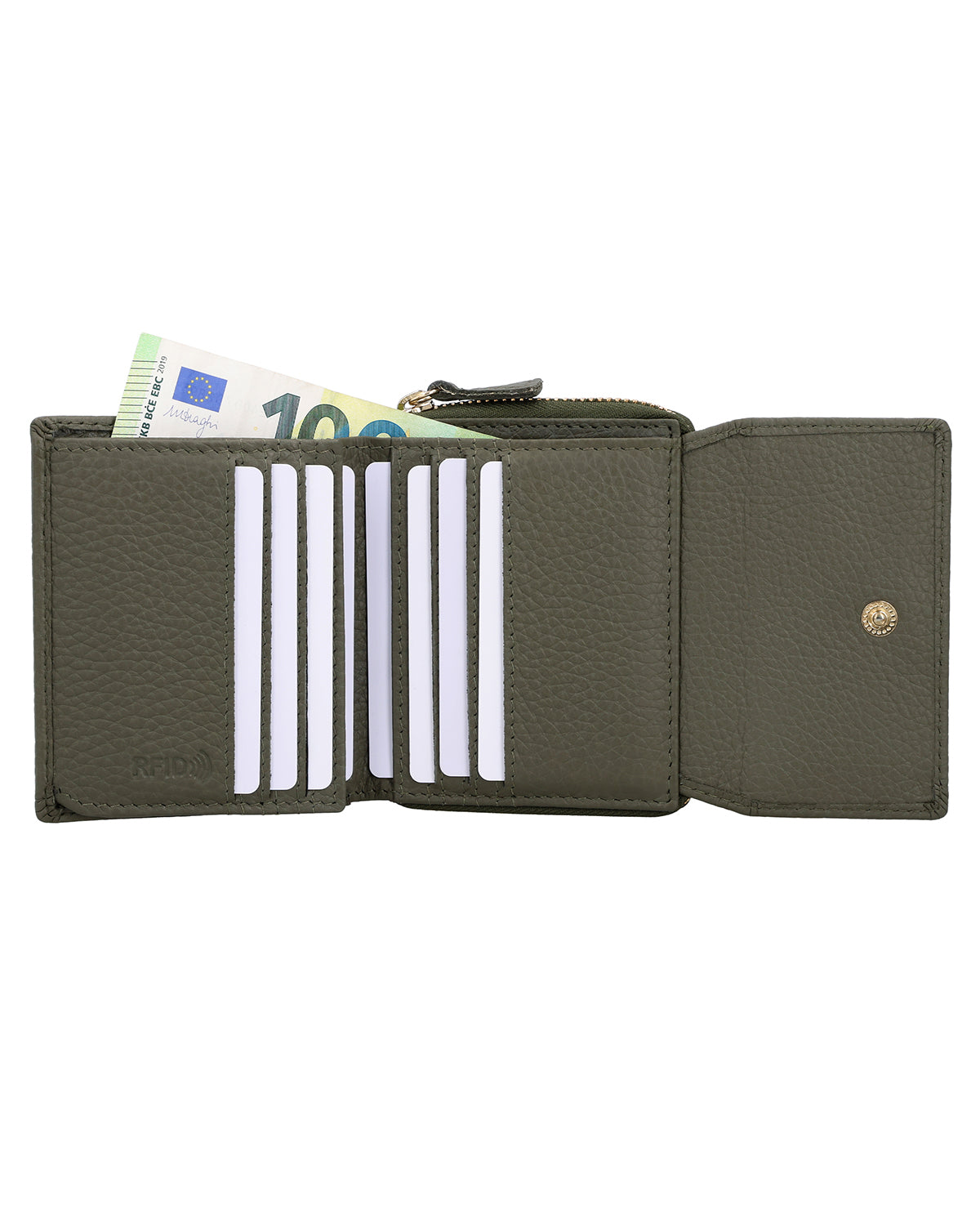 Letar du efter en funktionell, kompakt och elegant plånbok som passar i alla väskor? Vår "Brigitta" har många fack och extra fönster! Med sitt trendiga utseende är "Brigitta" inte bara extremt snygg, utan kombinerar också funktionalitet och stil! Dessutom är ”Brigitta” utrustad med RFID-skydd, vilket gör det betydligt svårare för obehöriga att läsa av dina kortuppgifter kontaktlöst – för ökad säkerhet i vardagen.