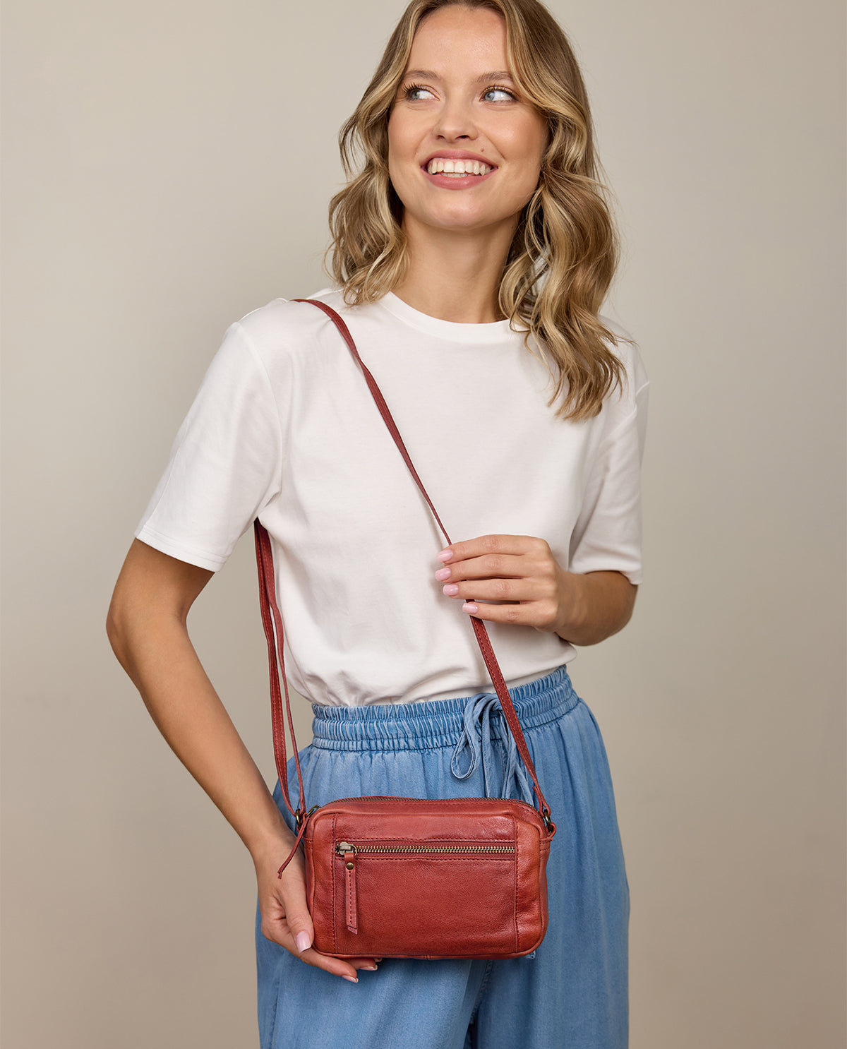Den mjuka och samtidigt robusta kohuden ger den trendiga handväskan en avslappnad och sportig vintage-stil och går därmed ihop fint med de flesta av dina utstyrslar.