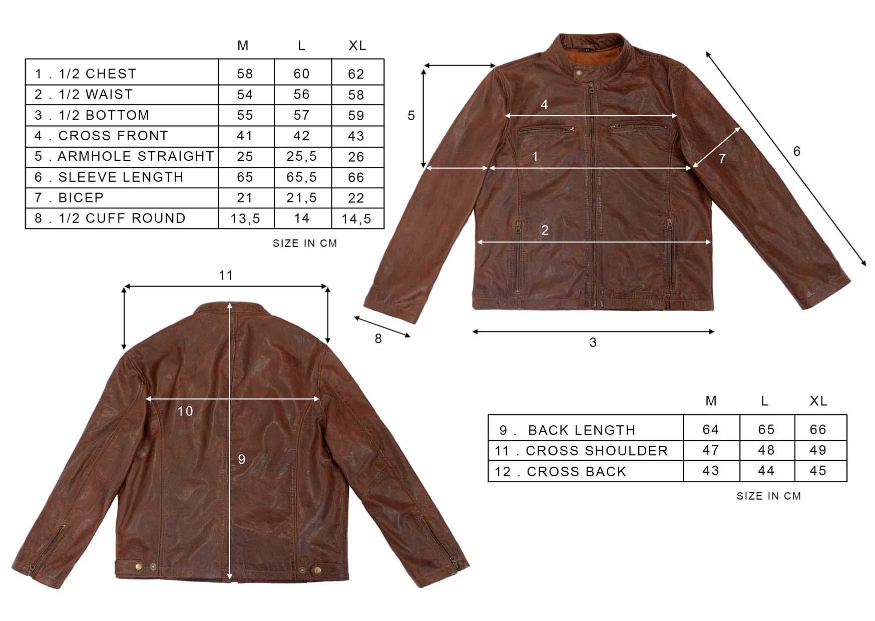 Denna eleganta bruna läderjacka kombinerar modern design med praktiska funktioner. Den har två höftfickor och två bröstfickor som ger gott om förvaringsutrymme. Dragkedjan i mitten kan öppnas uppifrån och ned, vilket ger extra flexibilitet. Kragen är utrustad med en tryckknapp, som ger en säker och stilfull avslutning.