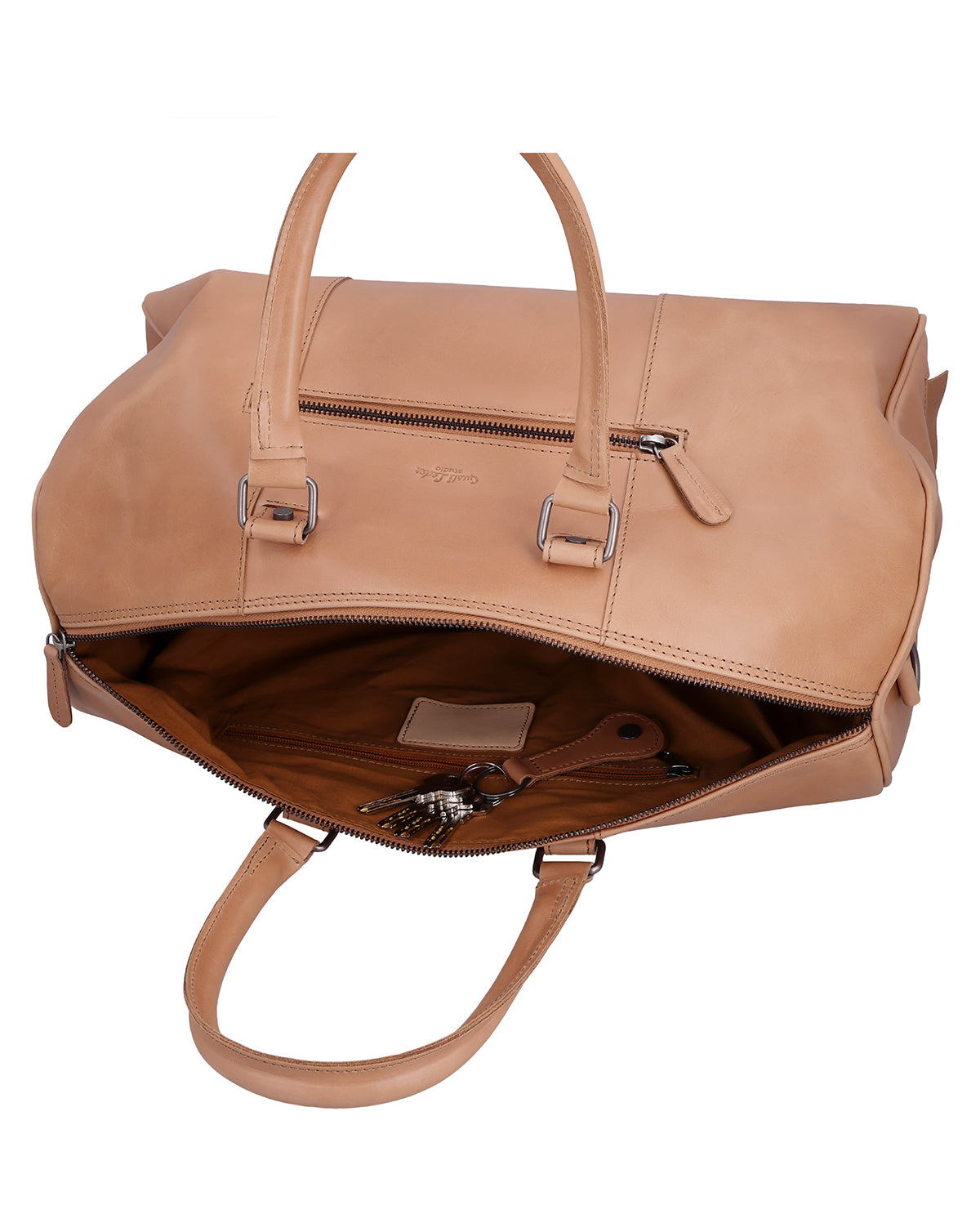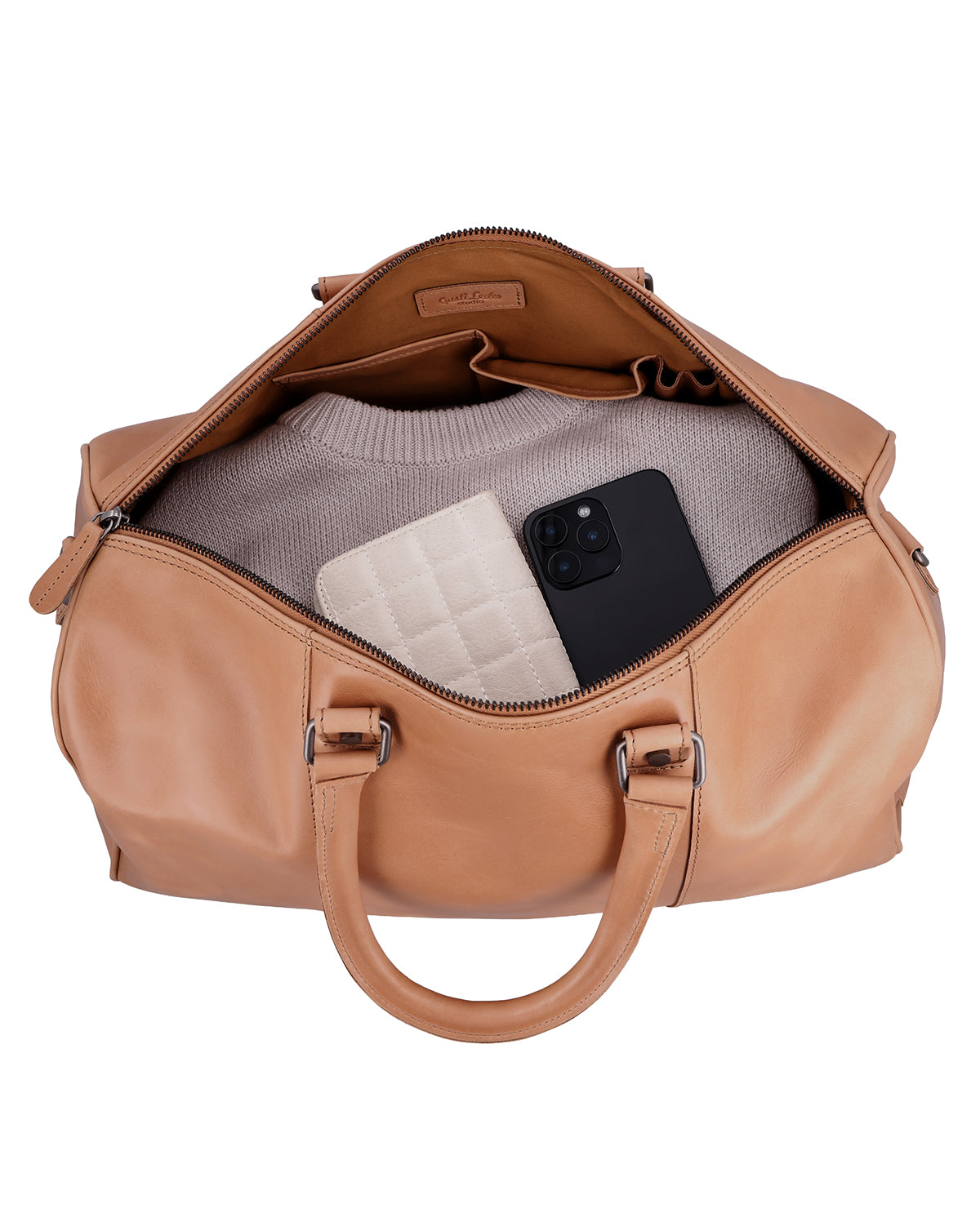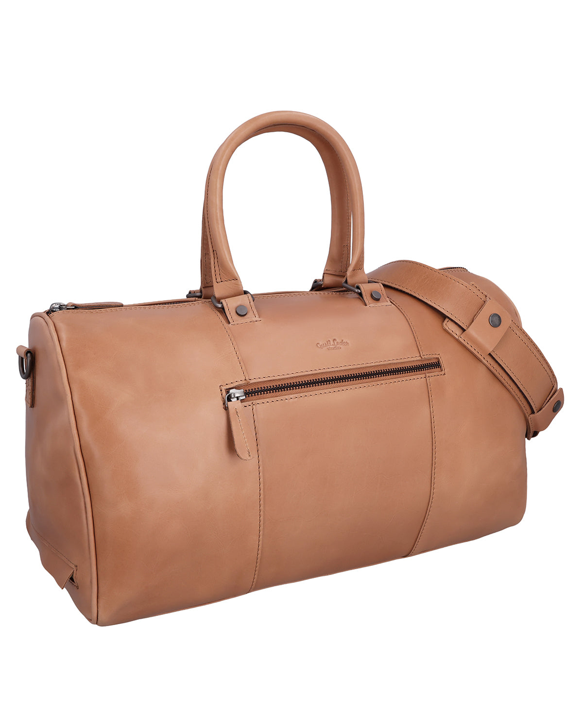 Inuti och utanpå har ”Joris” flera fack med dragkedja, kompletterade med fickor och pennfickor för strukturerad organisation. Den långa axelremmen är justerbar och avtagbar, och ett avtagbart axelskydd ger dessutom behaglig bärkomfort på längre sträckor. En stabil metallblixtlås stänger väskan säkert, medan en graverad patch erbjuder utrymme för personlig anpassning. Gusti-logotypen på insidan och utsidan rundar av läderresväskan på ett harmoniskt sätt. "Joris" är det perfekta valet för alla som söker funktion, komfort och hållbart läder i en resväska.