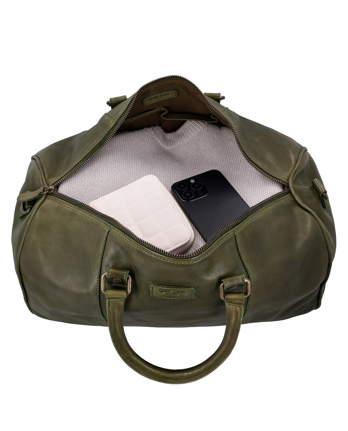 Resväskan "Joris" i grönt läder är gjord för kvinnor och män som vill ha koll på allt när de är på resande fot. Denna högkvalitativa resväska i läder kombinerar klassisk design med smarta extrafunktioner som verkligen gör skillnad när du reser. Ett dolt AirTag-fack ger extra säkerhet, medan en avtagbar nyckelring håller dina viktigaste saker nära till hands. Särskilt praktiskt är det separata våtfacket med vattenavvisande foder – perfekt för kläder som ska förvaras separat. ”Joris” är en läderväska som skapar ordning och underlättar märkbart när du är på resande fot.