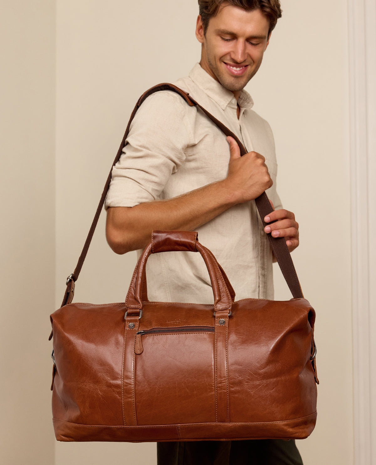 En weekendresa är på gång och du känner inte för att ta med den stora resväskan? Då rekommenderar vi vår resväska "Ruben" till dig. Det robusta lädret är extremt stabilt och av hög kvalitet, så den här väskan kommer definitivt att följa med dig under lång tid. Även den enkla vintage-designen talar för denna resväska, med vilken du kommer att locka avundsjuka blickar på tågstationer och flygplatser. En läderväska som alltid kombineras avslappnat och elegant.