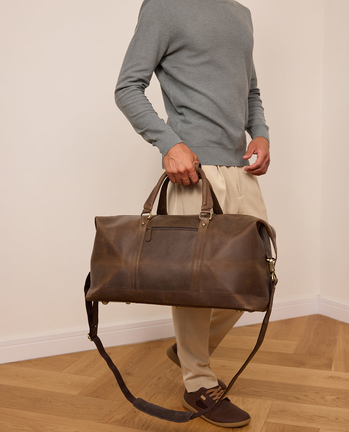 En weekendresa väntar och du har ingen lust att ta med den stora resväskan? Då rekommenderar vi vår resväska "Ruben" för dig. Det robusta lädret är extremt stabilt och av hög kvalitet, så denna väska kommer säkert att följa med dig under lång tid. Det enkla vintage-designen talar också för denna resväska, med vilken du kommer att dra avundsjuka blickar på tågstationer och flygplatser. En läderväska som alltid kombineras avslappnat och elegant.