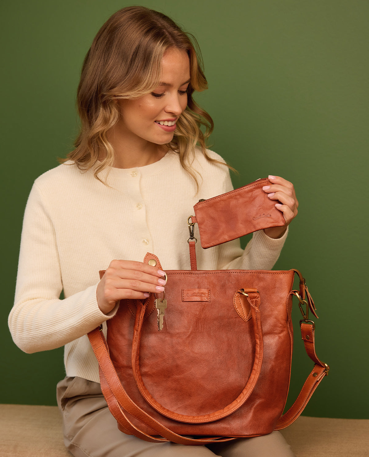 Handväska Axelväska Läderväska Shopper Designad i Berlin Dam Brun Läder