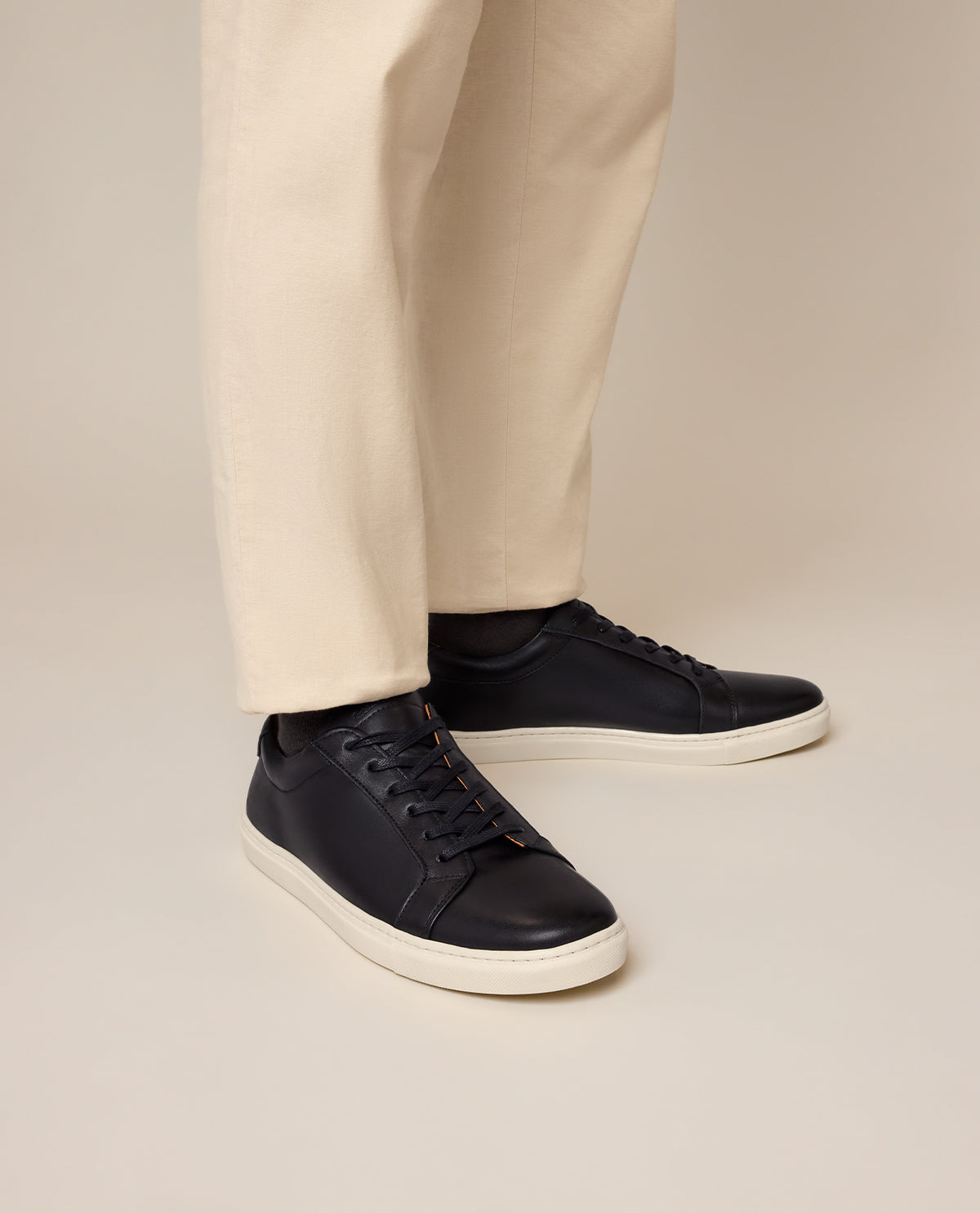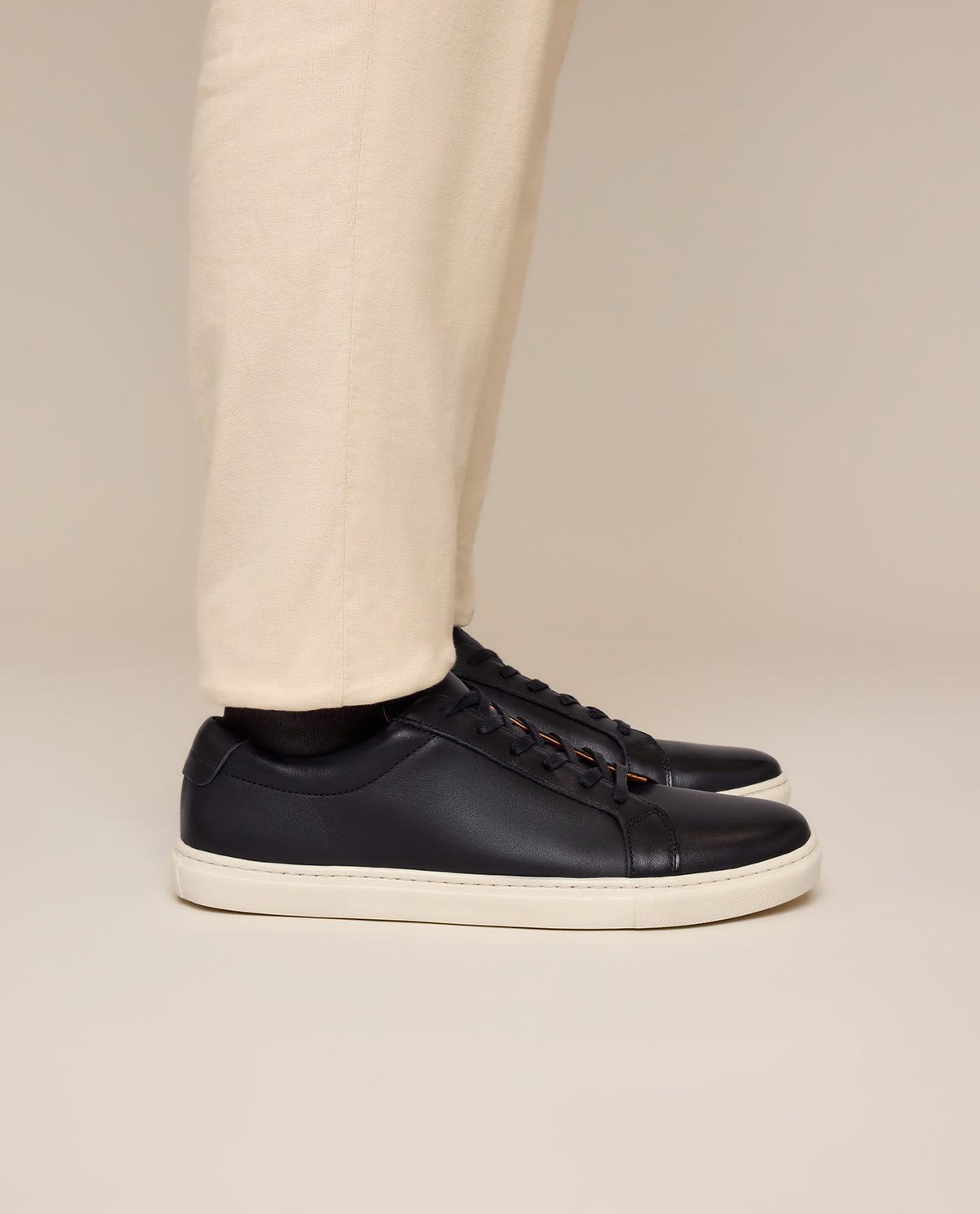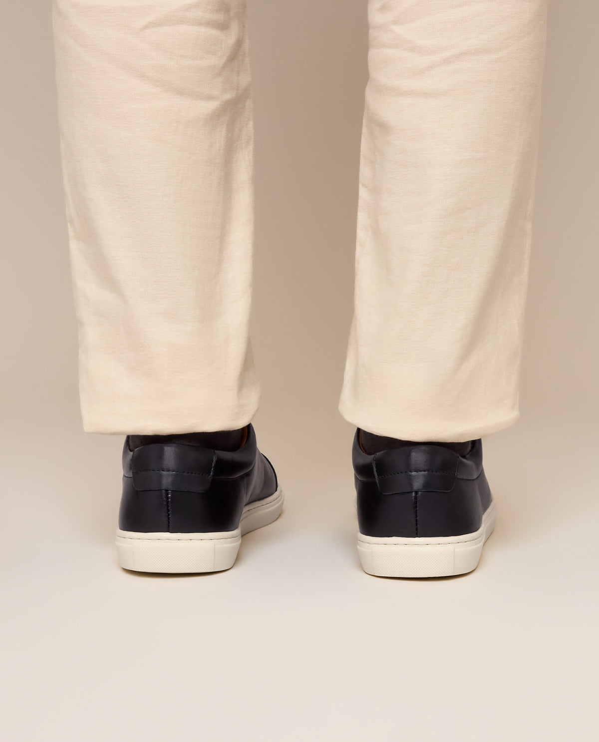 Det inre fodret och innersulan av syntetiskt läder ger dig en mjuk, andningsbar känsla och förhindrar tryckpunkter även efter lång användning. Den greppsäkra gummisulan garanterar säker hållning och behaglig fjädring på alla underlag. Den klassiska snörningen möjliggör en individuell passform som perfekt anpassar sig till din fot. "Frederik" är inte bara en sko, utan ett statement för understatement – en sneaker som förenar kvalitet, komfort och tidlös estetik och följer dig pålitligt varje dag.