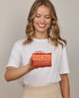 Förvaringsväska plånbok portmonnä organiser liten läderväska dam ljusbrun glänsande läder - Made in Italy