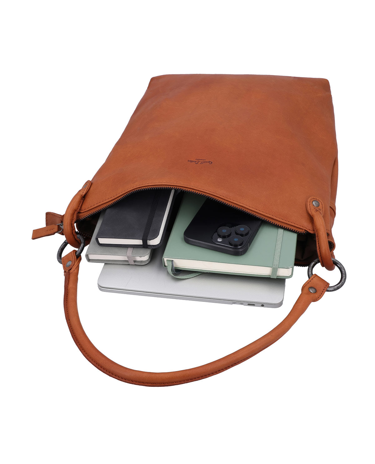 "Cathy" erbjuder inte bara mycket förvaringsutrymme utan också genomtänkta funktioner: Ett integrerat laptopfack skyddar dina enheter upp till 13" säkert, medan innerfacket med dragkedja erbjuder plats för små värdesaker. Den externa dragkedjefickan på baksidan ger snabb åtkomst till saker du snabbt vill nå när du är på språng. Med läderpatchen för en gravyr på insidan får väskan en personlig touch som understryker den högkvalitativa designen. Perfekt för damer som uppskattar både stil och funktionalitet.