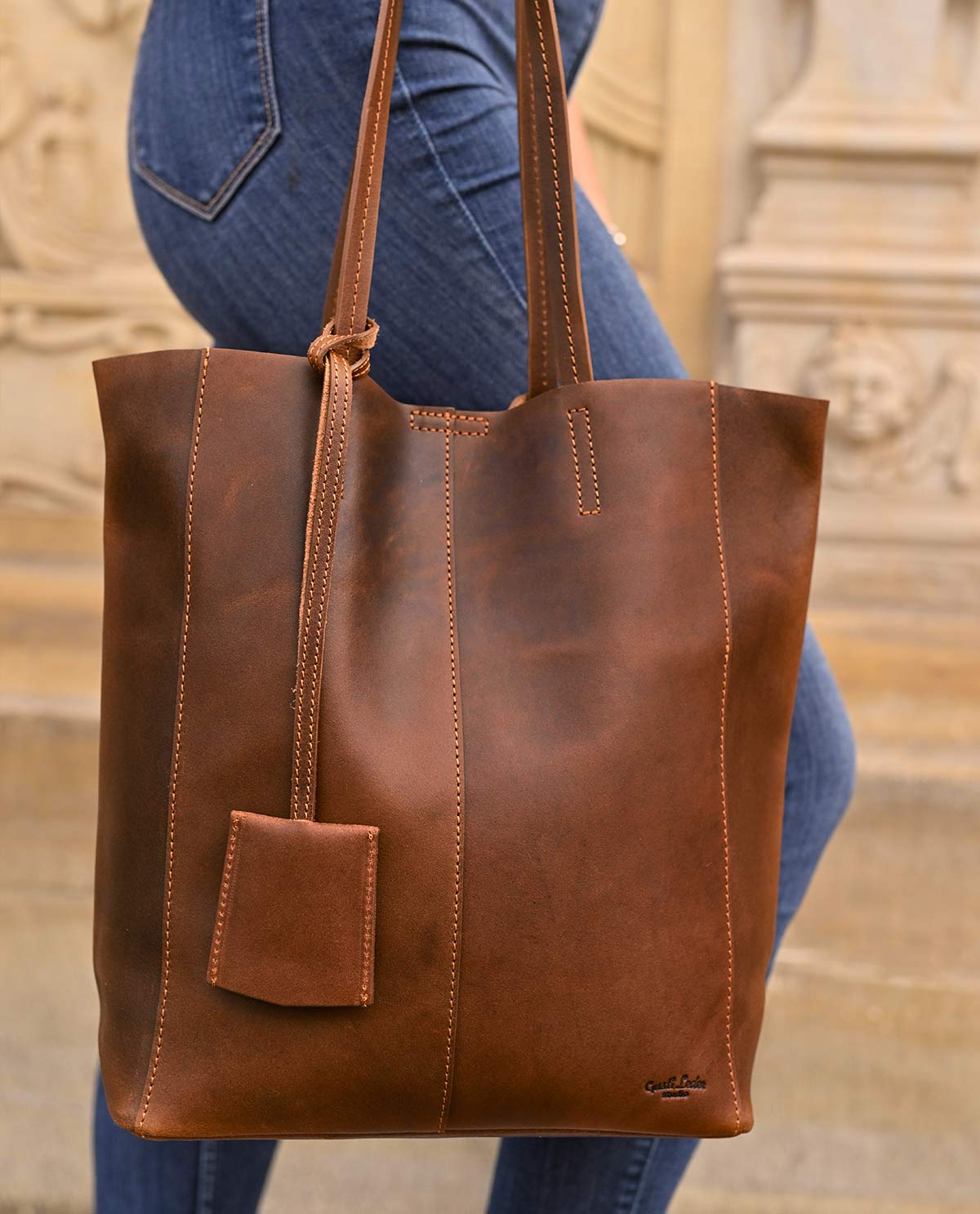 Enkel men samtidigt elegant, tidlös och modern - "Cassidy" får ögonen på sig i shoppingvimlet! Oavsett om du har mycket eller lite att bära så är "Cassidy" en perfekt följeslagare för alla tillfällen. Och för att inte dina minsta tillhörigheter ska vara omöjliga att hitta i denna stora väska så finns det en extra liten väska inuti som försluts med dragkedja. Praktiskt och smidigt kan du i miniväskan förvara allt från mobil och nycklar till tuggummi eller halstabletter - helt enkelt det du tycker känns nödvändigt att snabbt kunna fiska upp ur din stora läderväska! Själva väskan kan du enkelt stänga med hjälp av en magnetknapp. Som pricken över i:et kommer "Cassidy" med en liten fickspegel, så att du snabbt och bekvämt kan checka din look mellan möten eller när du är ute på stan.