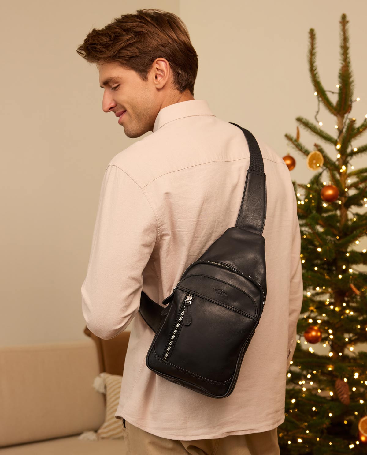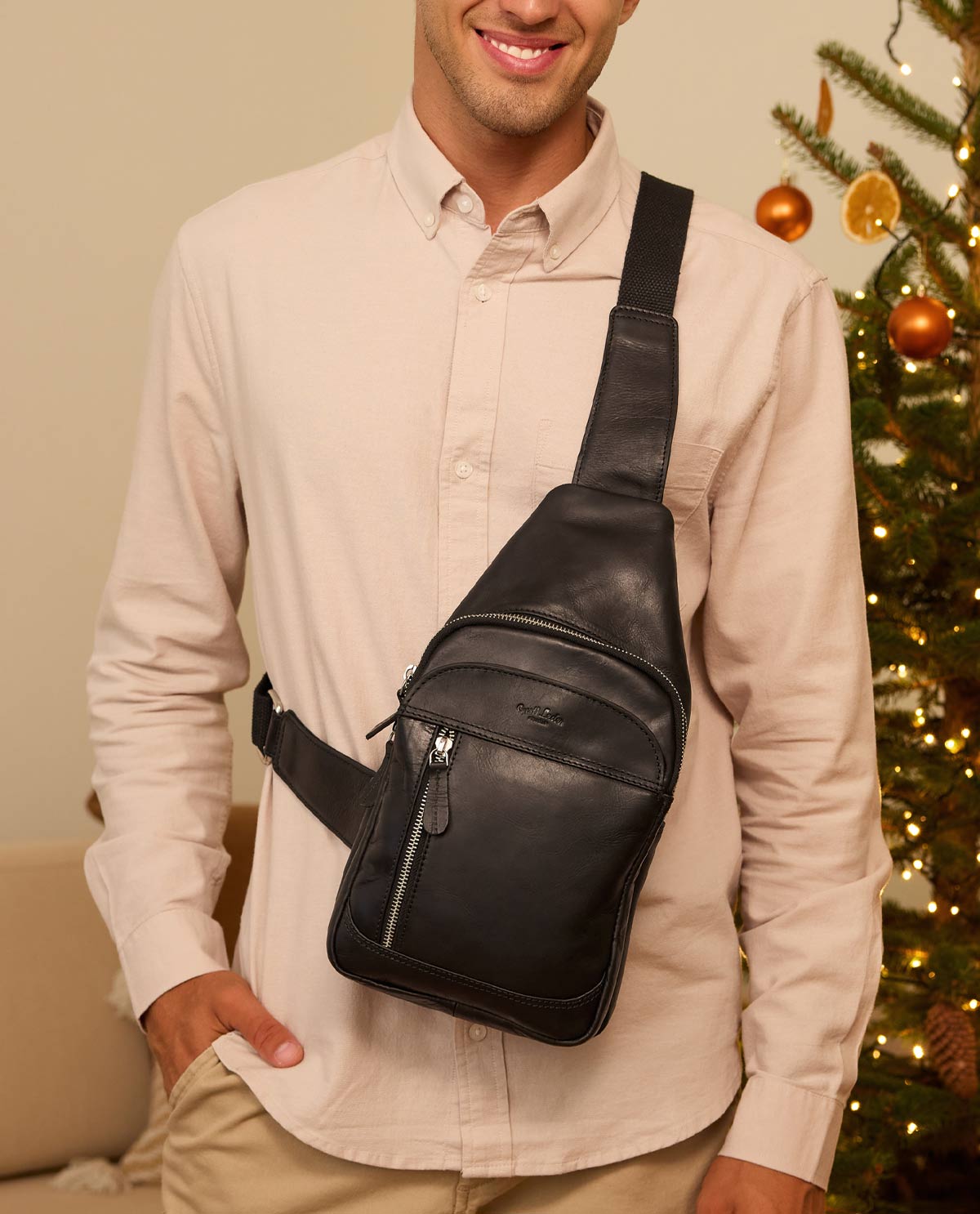 Midjeväskan imponerar inte bara med sin funktionalitet utan också med sitt högkvalitativa läderdesign. Det tåliga materialet och den noggranna tillverkningen gör väskan till en hållbar följeslagare som passar in i varje outfit med sin tidlösa svarta färg.