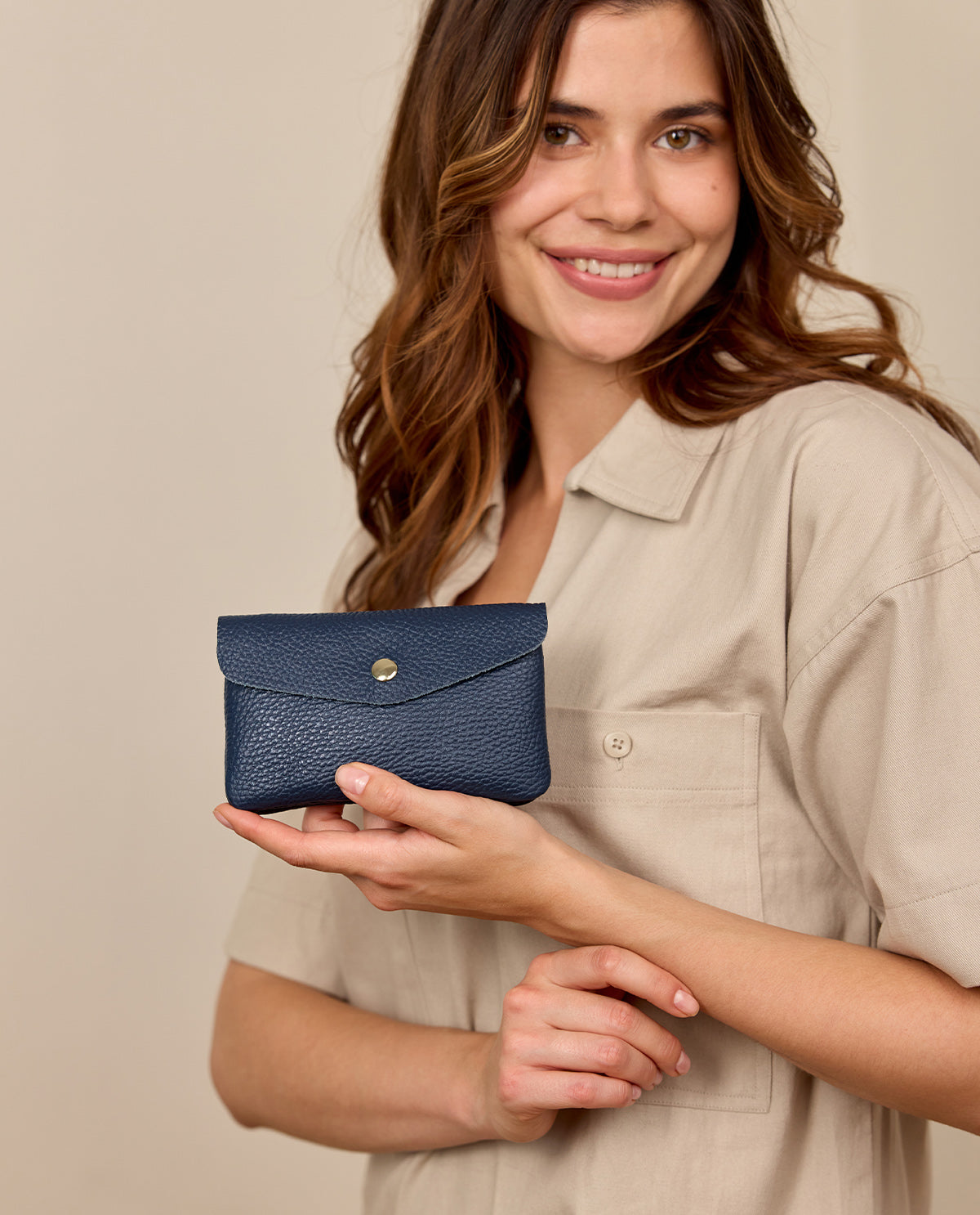 Aufbewahrungstasche Organizer klein Ledertasche Damen Blau Leder - Made in Italy