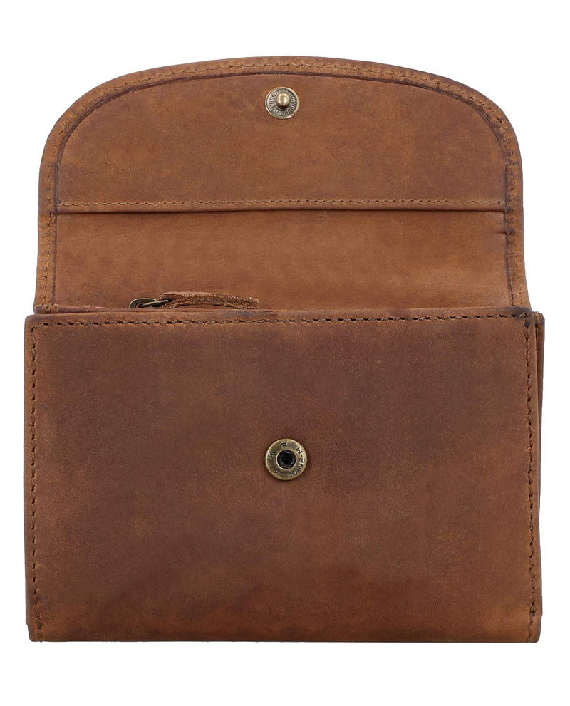 Das "Bryanna" Portemonnaie aus hochwertigem braunen Leder vereint zeitloses Design mit hervorragender Funktionalität. Mit seinem sicheren Druckknopfverschluss sorgt es dafür, dass all Deine Wertsachen sicher und geschützt aufbewahrt werden. Das Portemonnaie bietet zahlreiche Kartenfächer, die geschickt unterteilt sind, sodass Du Deine Karten übersichtlich und schnell griffbereit hast. Besonders praktisch sind die innenliegenden Reißverschlussfächer, die Platz für Münzen oder andere kleine Wertsachen bieten.
