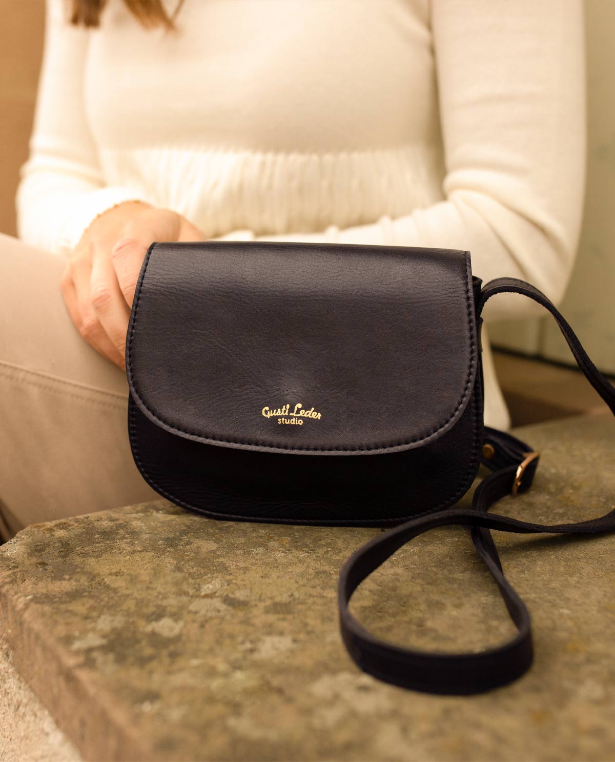 Ihre kompakte Form erlaubt derweil, dass du agil unterwegs bist und doch alle wichtigen Essentials bei dir hast. So passen bequemGeldbörse, Schlüssel, Handy und dein Make Up rein. Ihre Goldakzente auf dem tiefschwarzem hochwertig verarbeitetem Rindsleder runden das Design von "Kayla" ab. Über die Schulter gehängt, kannst es nun losgehen - mit "Kayla"!