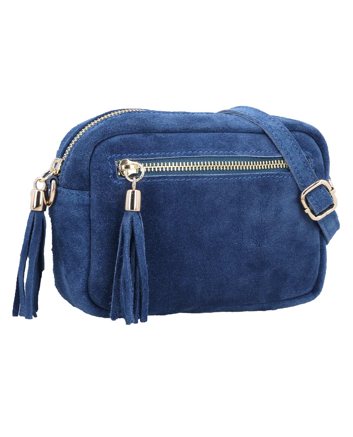 Umhängetasche Ledertasche Handtasche Crossbody Tasche Damen Blau Leder - Made in Italy