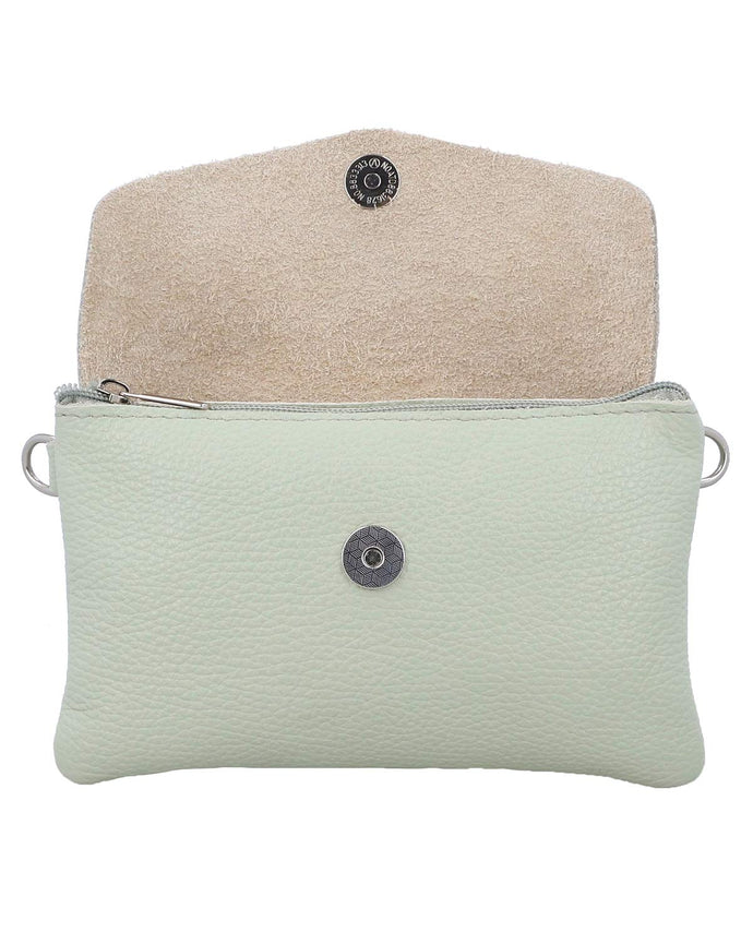 Umhängetasche Ledertasche Crossbody Tasche Clutch Handtasche Damen Hellblau Leder - Made in Italy