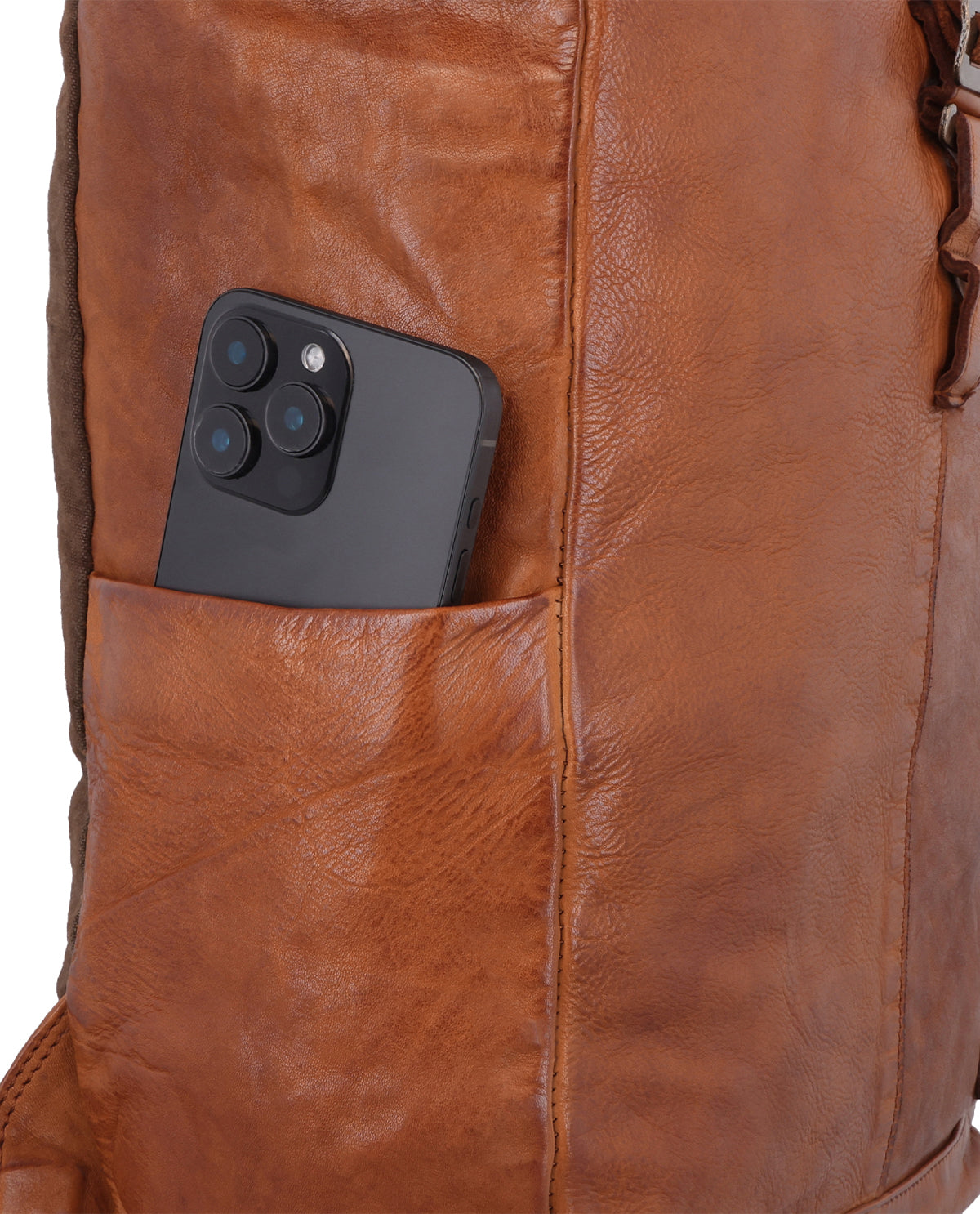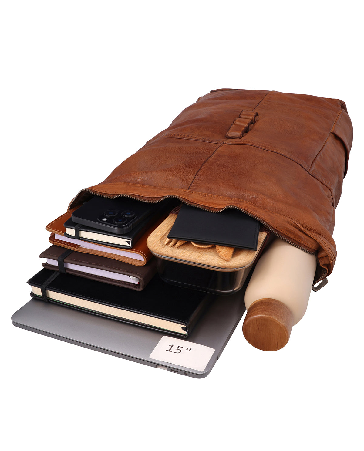 Ob für Schule, Uni oder Arbeit – unser Rolltop-Rucksack „Bendik“ passt einfach immer. Inspiriert durch Berlin überzeugt er mit Flexibilität, hohem Tragekomfort und großzügigem Platzangebot. Dieser klassisch-robuste Daypack aus honigbraunem Leder fällt besonders durch sein trendiges Rolltop auf – ein Look, an dem man momentan einfach nicht vorbeikommt.