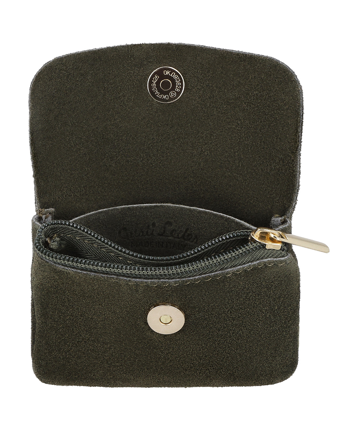 Aufbewahrungstasche Geldbörse Portemonnaie Geldbeutel Organizer klein Ledertasche Damen Dunkelbraun Leder - Made in Italy