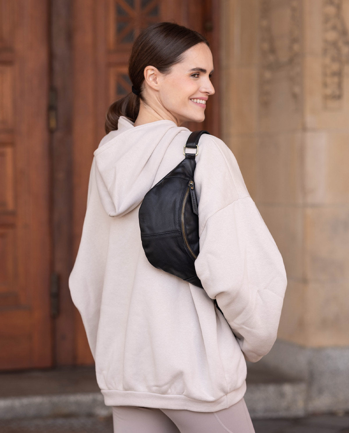 Die Hosentaschen reichen nicht aus, aber eine Handtasche muss es nun auch nicht sein? Wir haben die Lösung! Unsere Bauchtasche "Cillian" kann dich überall dorthin begleiten, wo eine größere Tasche nur stören würde. Wer will schon mit cross Body Bag auf einem Konzert sein? Denn beim wilden Tanzen und Pogen stört die Handtasche doch nur! Wenn du deine Sachen trotzdem am Mann haben möchtest kann "Cillian "dir weiterhelfen: Smartphone, Schlüssel und Portemonnaie finden in der Bauchtasche aus Schafsleder ihren Platz. Ob wirklich um die Hüfte getragen oder lässig schräg über den Rücken. Du entscheidest! Durch das reduzierte Design passt "Cillian" zu jedem Outfit und ist so nicht nur praktisch, sondern auch unfassbar stylisch. Der Sommer kann kommen. Auf zum nächsten Festival!