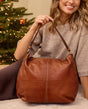 Du suchst nach einem klassischen Shopper, der Dich nicht im Regen stehen lässt? Dann ist "Hannah" genau Dein Fall. Diese mittelgroße Umhängetasche besteht aus robustem und widerstandsfähigem Rindsleder, das in einem kräftigen camelbraun erstrahlt. Mit ihrem geräumigen Innenfach hast Du genug Platz für alles, was Du auf einem Bummel durch die Stadt oder im Berufsalltag gebrauchen könntest. Durch das stilvolle Design, inspiriert von Berlin, bist Du immer bestens ausgestattet, ob für den täglichen Einsatz oder einen spontanen Ausflug.