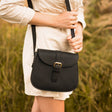 Das weiche und zugleich widerstandfähige Büffelleder dieser kleinen Umhängetasche bietet genügend Platz für Deinen Geldbeutel, Schlüssel, Handy und sogar noch ein Notizbuch. Ganz egal, ob Du durch die City flitzt oder die Nacht einer ausgedehnten Clubtour zum Tag machen willst: „Linda“ lässt dich nicht im Stich – goldenem Magnetverschluss im Mock Schnallenverschluss sei Dank! So bleibt auch alles sicher an seinem Platz!