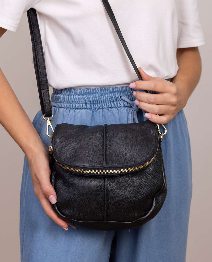 Die Umhängetasche „Iselin“ vereint zeitlose Eleganz mit durchdachter Funktionalität – der perfekte Begleiter für Deinen Alltag und besondere Anlässe. Gefertigt aus hochwertigem schwarzem Leder, überzeugt sie mit einer weichen Haptik und einer langlebigen Verarbeitung. Die edlen Metallelemente setzen dezente Akzente und unterstreichen die hochwertige Qualität.