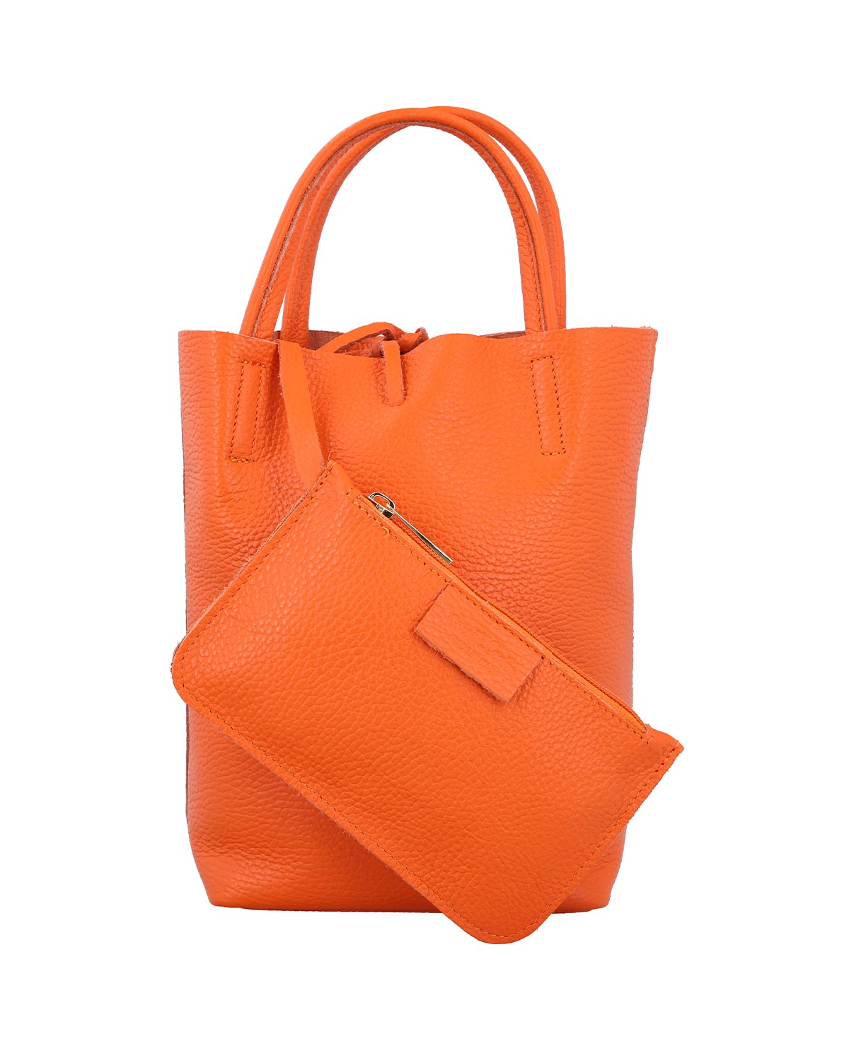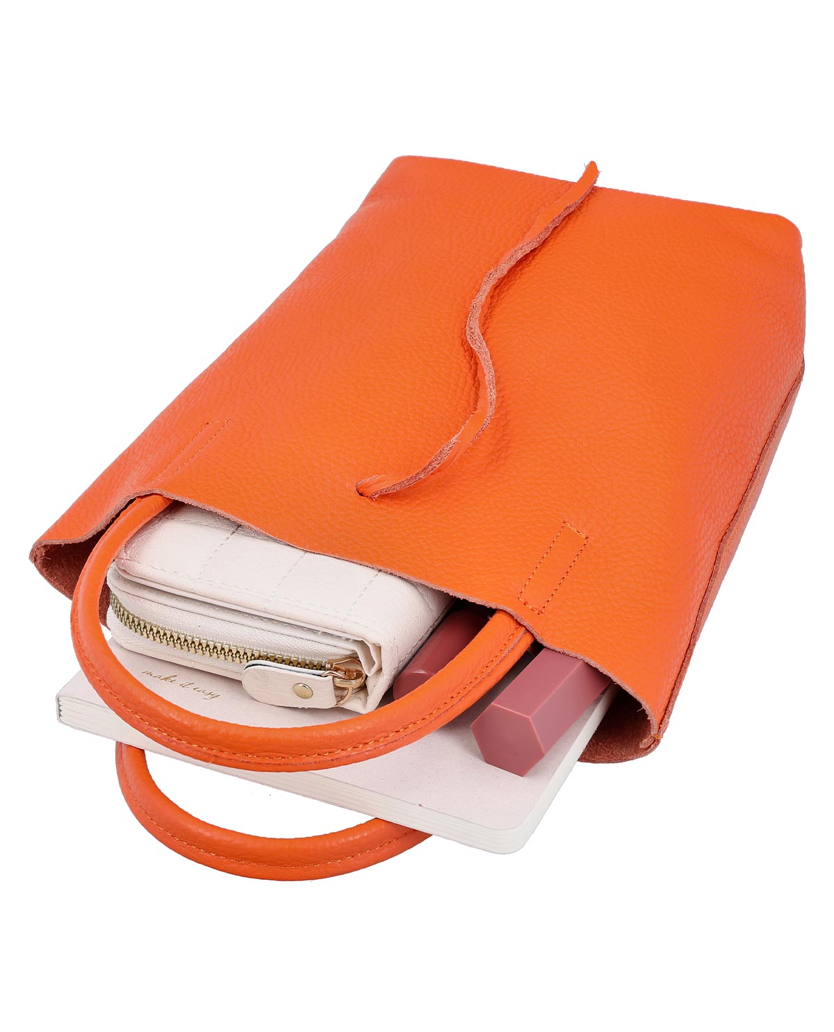 Umhängetasche Ledertasche Shopper Handtasche Damen Orange Leder - Made in Italy