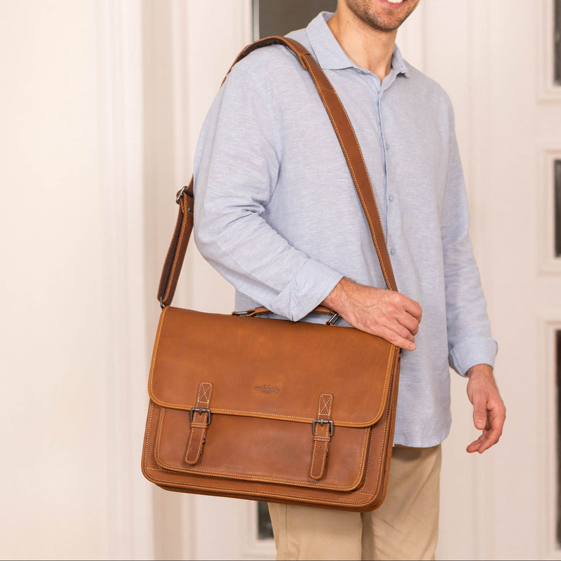 Funktion und Stil machen unsere schicke Umhängetasche „Fynn“ bei Büroangestellten beliebt. Die Freude am Anziehen für das Büro verdoppelt sich, wenn man das richtige Accessoire hat, das auch zu jedem Outfit passt. Mache deinen Leder Liebling einzigartig, indem du etwas persönliches eingravieren lässt.