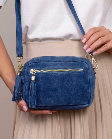 Aufbewahrungstasche Organizer klein Ledertasche Damen Blau Leder - Made in Italy