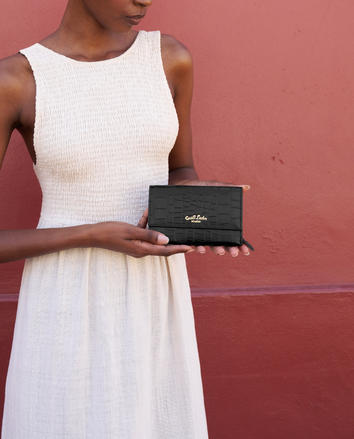 Du suchst ein klassisches, aufklappbares Portemonnaie mit genug Platz für extra viele Karten und ein extragroßes Münzfach? Aus hochwertig gegerbtem Rindsleder bietet "Gloria" Dir genau das und besticht zusätzlich durch ihren trendy Kroko-Look. Funktionalität mit der Extraportion Trend. Zusätzlich ist „Gloria“ mit einem RFID-Schutz ausgestattet, der es Unbefugten deutlich erschwert, Deine Kartendaten kontaktlos auszulesen – für mehr Sicherheit im Alltag.