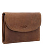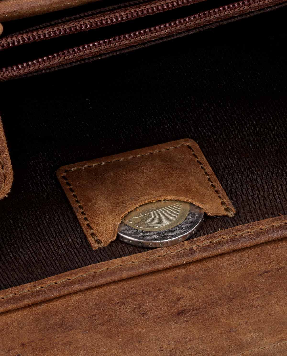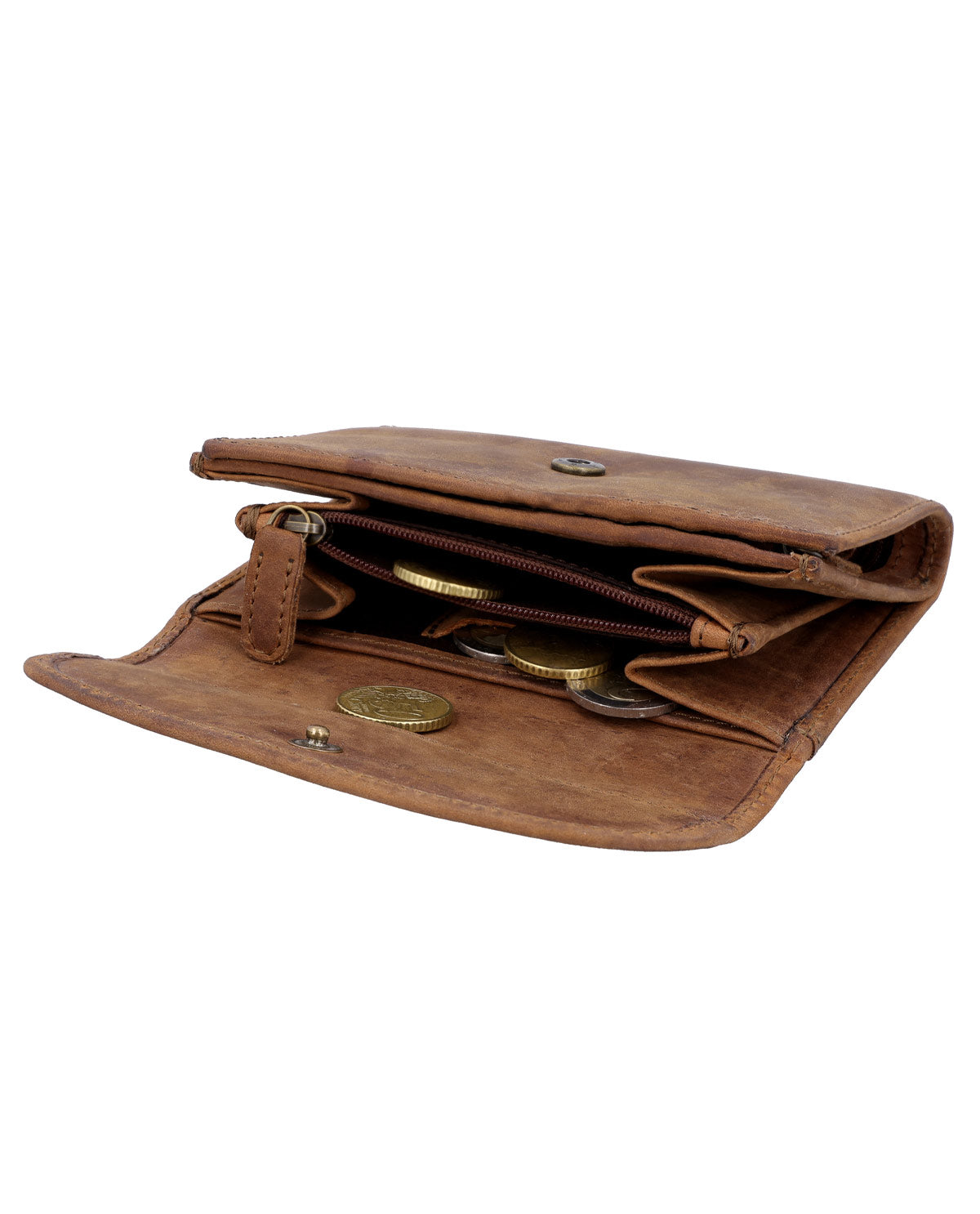 Das "Bryanna" Portemonnaie aus hochwertigem braunen Leder vereint zeitloses Design mit hervorragender Funktionalität. Mit seinem sicheren Druckknopfverschluss sorgt es dafür, dass all Deine Wertsachen sicher und geschützt aufbewahrt werden. Das Portemonnaie bietet zahlreiche Kartenfächer, die geschickt unterteilt sind, sodass Du Deine Karten übersichtlich und schnell griffbereit hast. Besonders praktisch sind die innenliegenden Reißverschlussfächer, die Platz für Münzen oder andere kleine Wertsachen bieten.