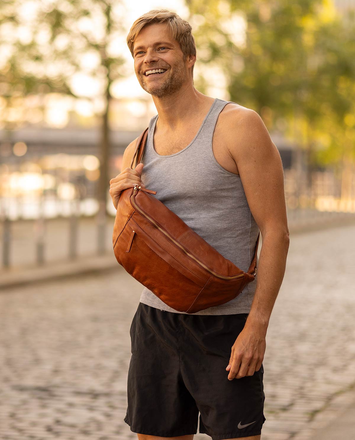 Denn diese geräumige Tasche aus widerstandsfähigem Rindsleder im Format einer großen Bauchtasche kombiniert alle Vorteile eines kompakten Rucksacks mit dem absolut angesagten, lässig-coolen Bellybag-Style - nicht zuletzt auch wegen der angenehm-weichen Beschaffenheit des Leders und dem Chic silberbener Reißverschlüsse. Auf diese Weise kann Dich "Esben" überall hin begleiten, ohne dass Du auf deine liebsten Habseligkeiten oder einen coolen Auftritt verzichten musst. Schließlich bietet "Esben" für Dein Smartphone, Schlüssel und Portemonnaie, Taschenkalender, Stifteetui und noch einiges mehr einfach immer genügend Platz!