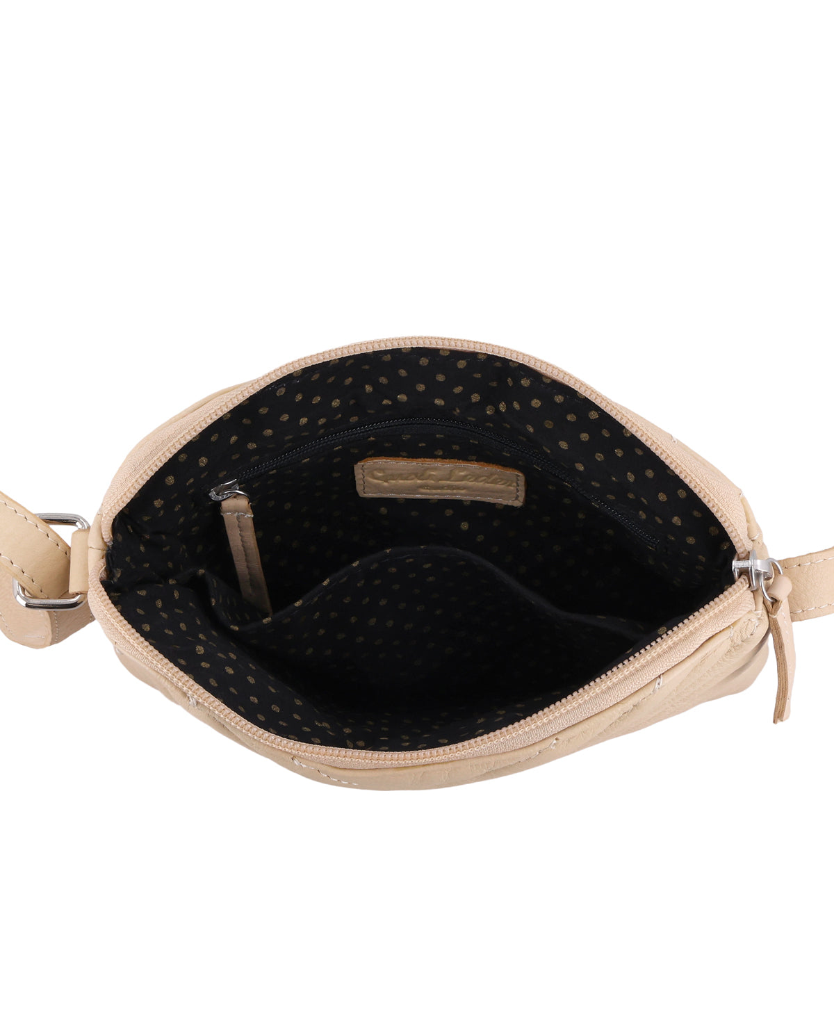 Die kleine Handtasche „Aline“ ist eine Lederhandtasche für Damen, die Farbe und Struktur bewusst in ihren Alltag integrieren möchten. Das beige Leder wirkt lebendig und wird durch das markante Muster auf der Oberfläche zu einem besonderen Hingucker, der Deinem Outfit sofort Leichtigkeit verleiht. Trotz ihres kompakten Formats bietet „Aline“ dank Reißverschluss-Hauptfach und verstellbarem Schulterriemen genau die Flexibilität, die Du im Alltag brauchst. Diese Umhängetasche aus Leder begleitet Dich entspannt durch den Tag und setzt dabei ein klares, positives Stilstatement.