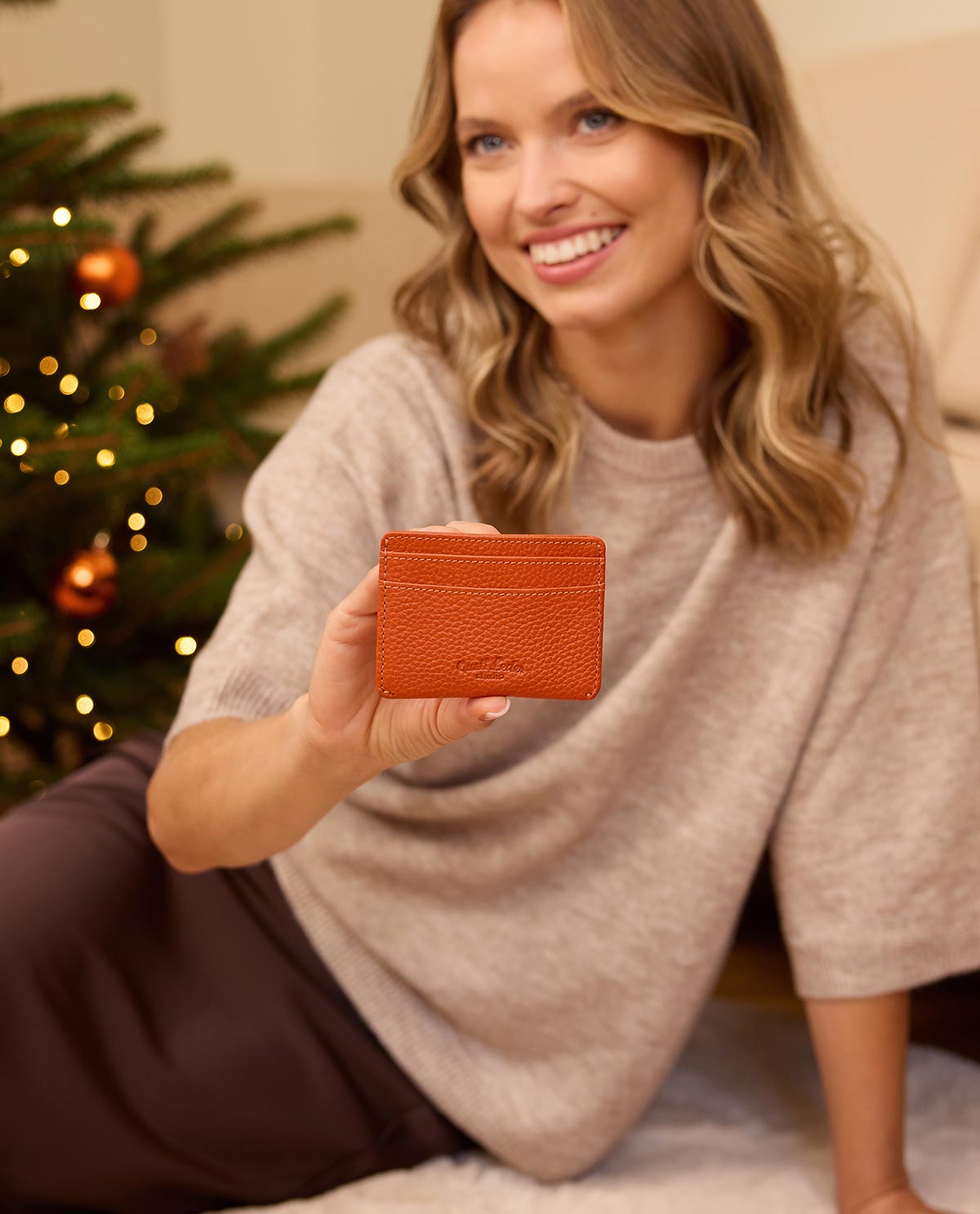 Praktisch und stilvoll – das "Qani" Kartenetui aus orangenem Leder