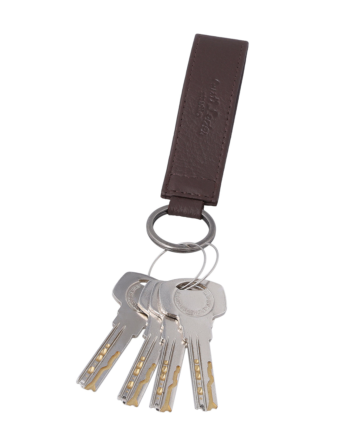 Der Schlüsselanhänger „Miran“ ist ein braunes Lederaccessoire für Damen und Herren, das durch seine klare Form und reduzierte Gestaltung überzeugt. Das schlichte Design wirkt zeitlos und passt sich mühelos unterschiedlichen Taschen oder Schlüsselbunden an. Dank des stabilen Metallrings bleiben Deine Schlüssel sicher befestigt und jederzeit griffbereit. „Miran“ steht für unkomplizierte Funktionalität in einem kompakten Format.