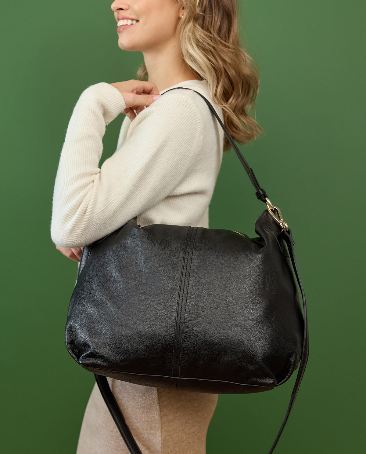 Are you looking for a classic tote bag that won't let you down in the rain? Then “Hannah's” exactly what you've been looking for! This medium-sized shoulder bag is made of sturdy buffalo leather and comes in an elegant black design. You'll be on trend and still have enough space for everything you need when you're out and about in the city or at the office, thanks to the spacious compartment inside.