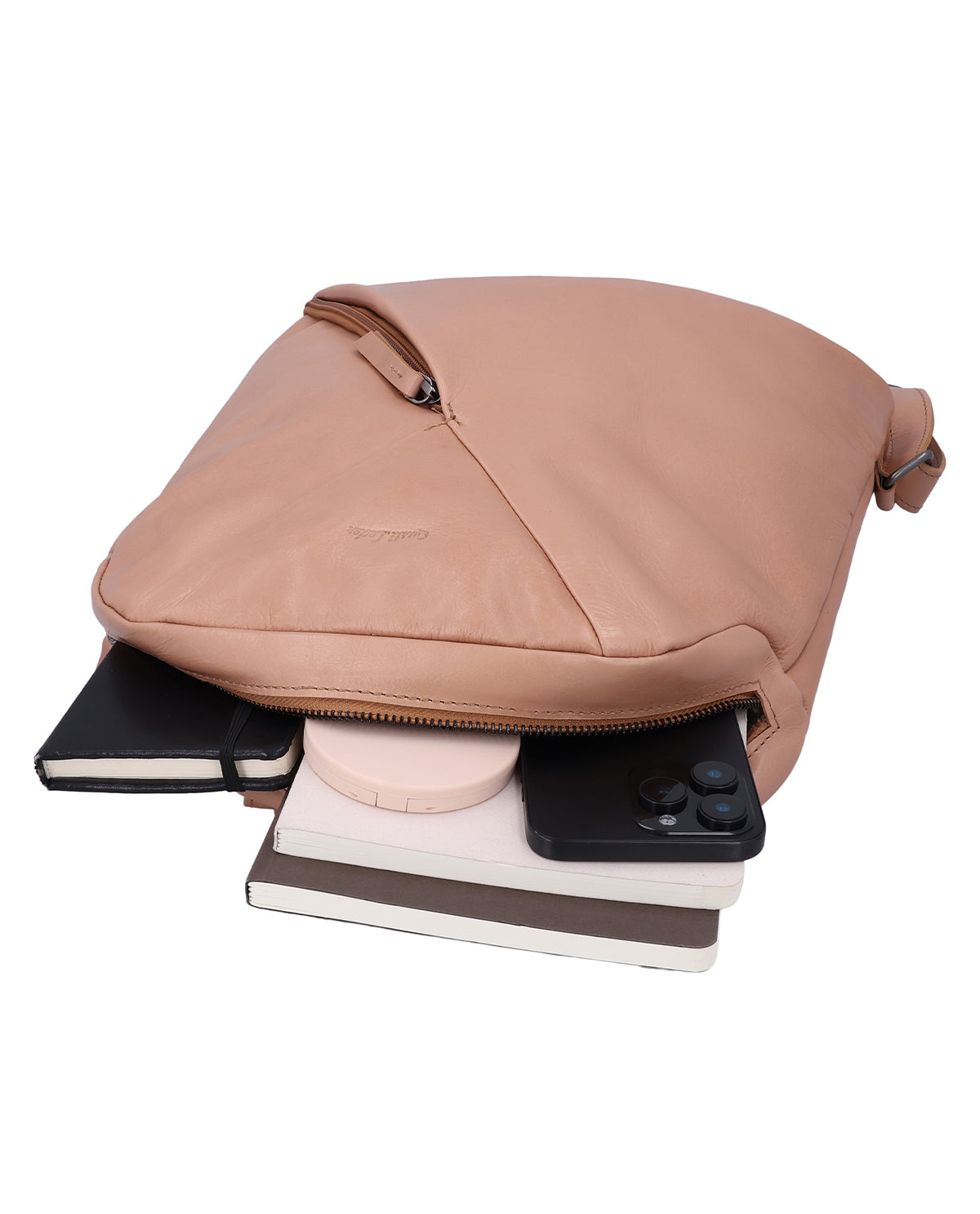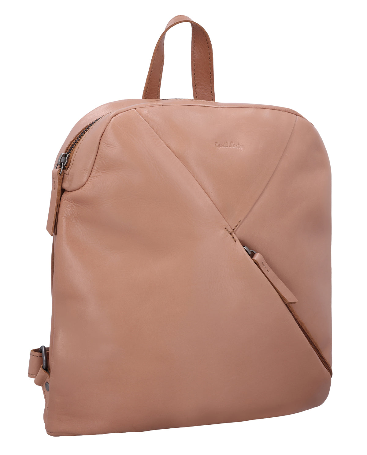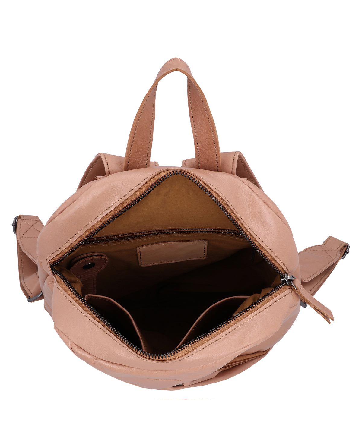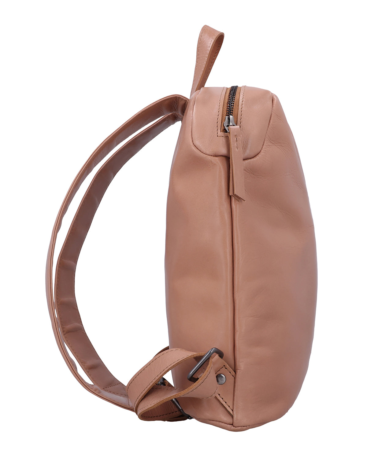 The large "Sanna" backpack is a beige leather backpack for women that will reliably accompany you through busy days—whether in everyday life, out and about in the city, or on your way to university. The hidden AirTag compartment gives you peace of mind, while the removable key ring keeps your most important essentials where you can find them immediately. One main compartment with zipper closes securely, making "Sanna" a companion that brings order and ease to your day.