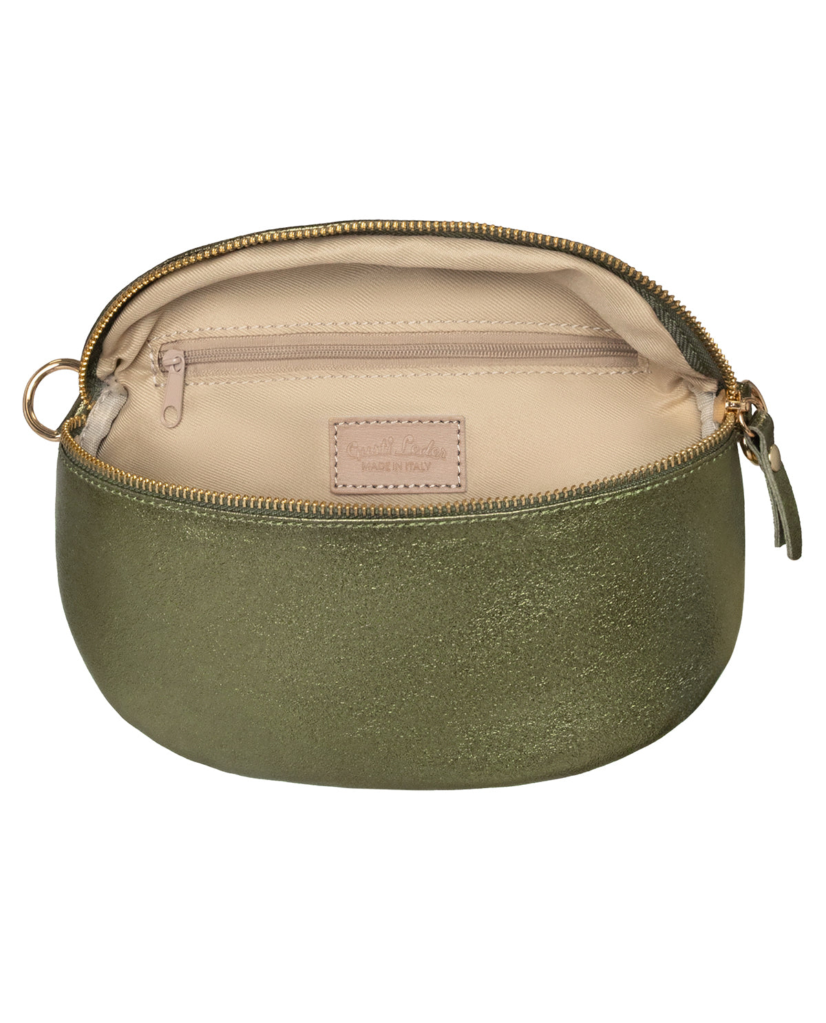 The "Brinja" shoulder bag impresses with its elegant design and high functionality. With the distinctive, semi-circular silhouette and the complete zipper along the top edge, it not only offers ample space for your essentials but also security for all your personal belongings. The high-quality leather gives it a noble appearance that perfectly fits into your modern everyday life. Inside, you will also find the finely embossed "Made in Italy" logo, which impressively underscores the origin and quality of this bag.