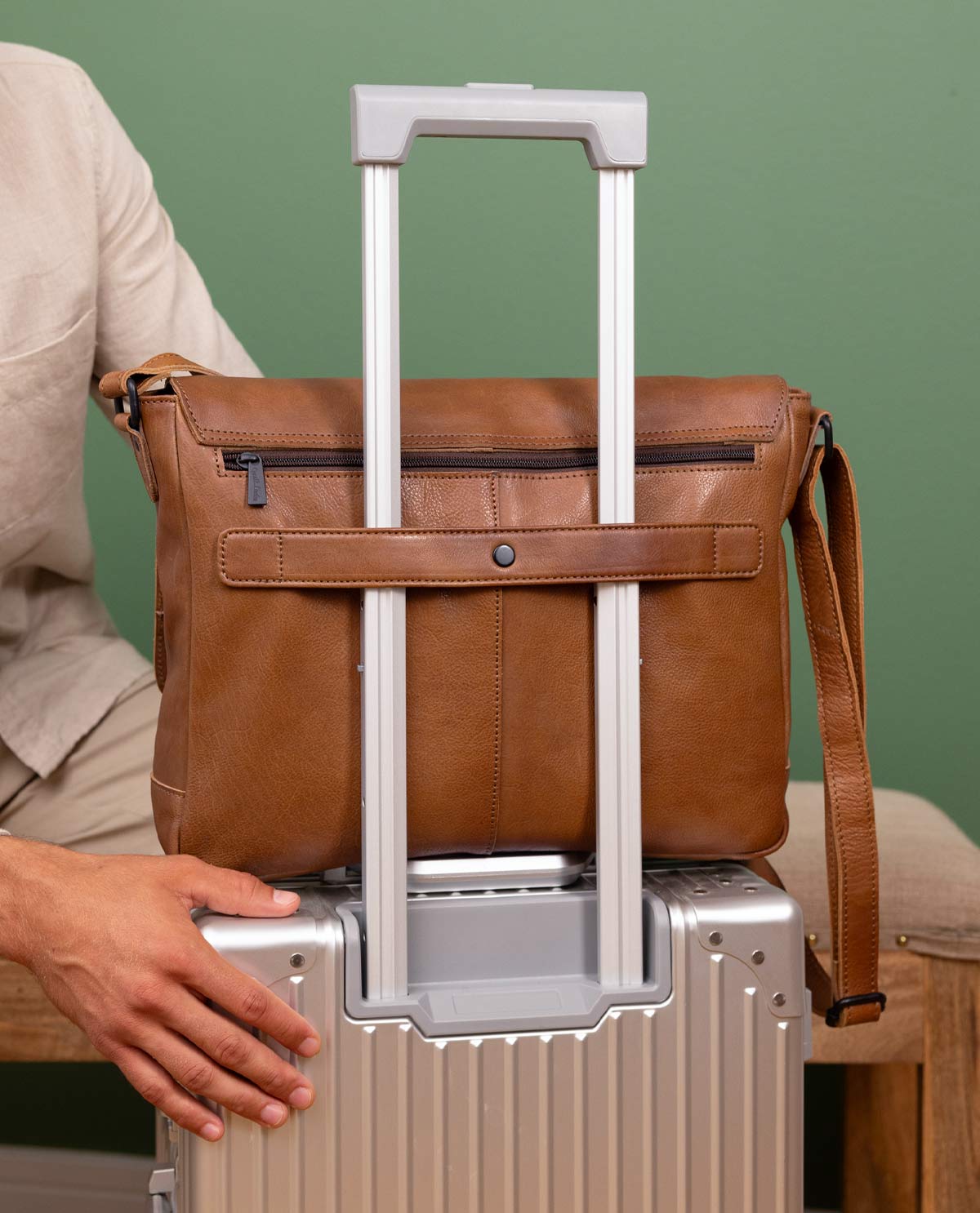The "Attila" not only offers excellent organization but also versatile usage options. The adjustable shoulder strap allows you to carry it comfortably, while the additional zippered pockets inside and on the back let you securely store small items like pens or cards. A particularly practical feature is the strap on the back, which lets you securely attach the bag to your rolling suitcase. For cyclists, the bag also offers an additional security strap, allowing you to conveniently attach it to your bike – so your laptop is always safe on the go!